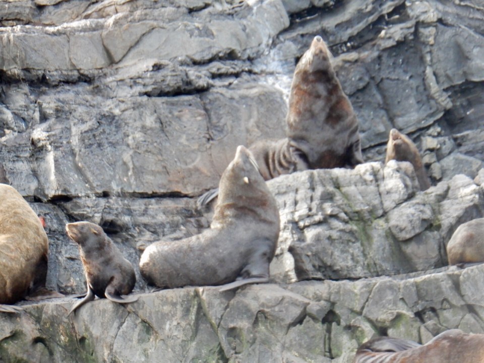 The first we saw were South America Fur Seals…. max out at 300 kilos for males and 200 females. One alpha male has a haram … one pup per year for each female. The first group were called fur seals but are actually sea lions. These had a pointy snout, the second group were sea lions too but have a pushed in nose.