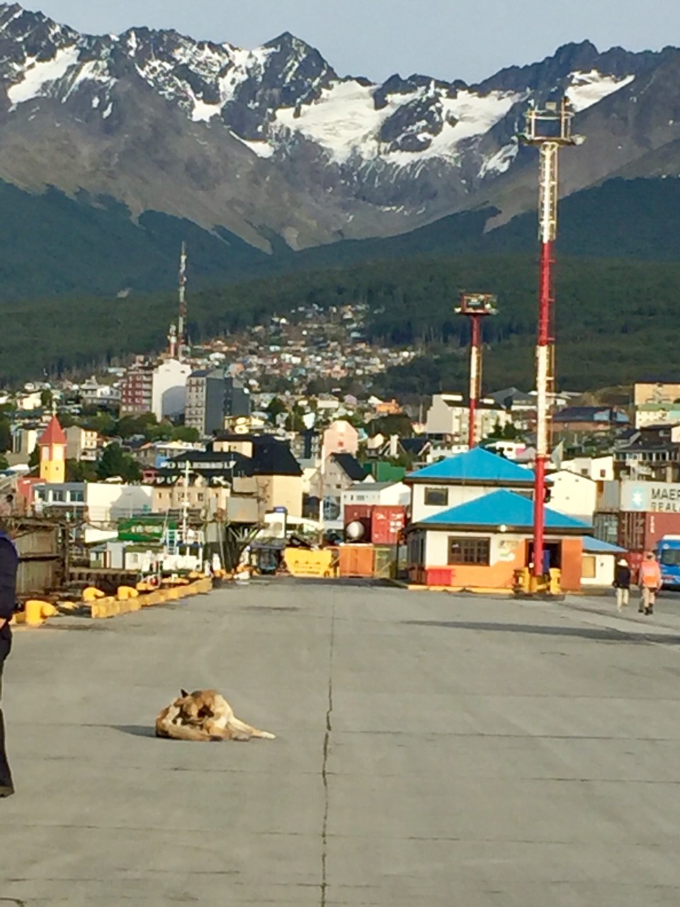 Ushuaia itself is quite large with a major prison. The city of 65-75,000 is built on the side of the mountains and doesn’t look dissimilar to North Vancouver. Note the very defined tree line. The mountains on either side of the Beagle Channel are rugged and steep… coming right down to the waters edge…., kind of reminded us of the coast of B.C.