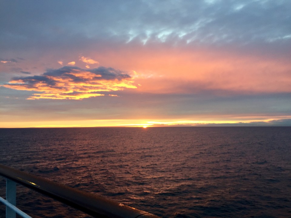 We have been at sea for 2 days… and what a rocky ride! Lots of people… passengers and crew, are sea sick. I’ve never been seasick in my life but I certainly was feeling queasy. Since our arrival back on board in Punta Del Este, our porthole “windows” have been shut as a precaution. Personally I would like to be able to see out. It really has been rough…. difficult to walk without looking totally drunk.