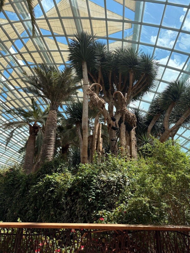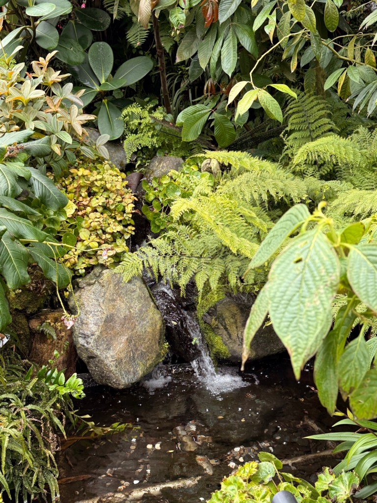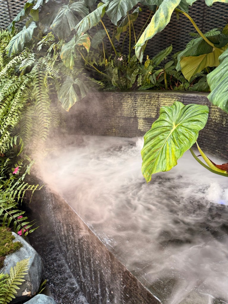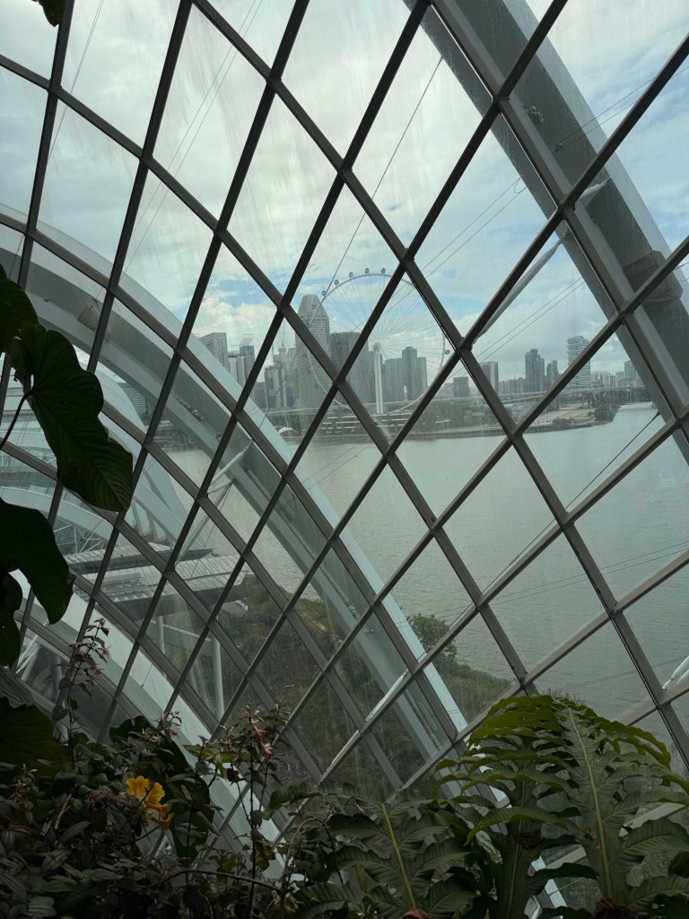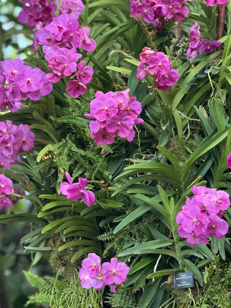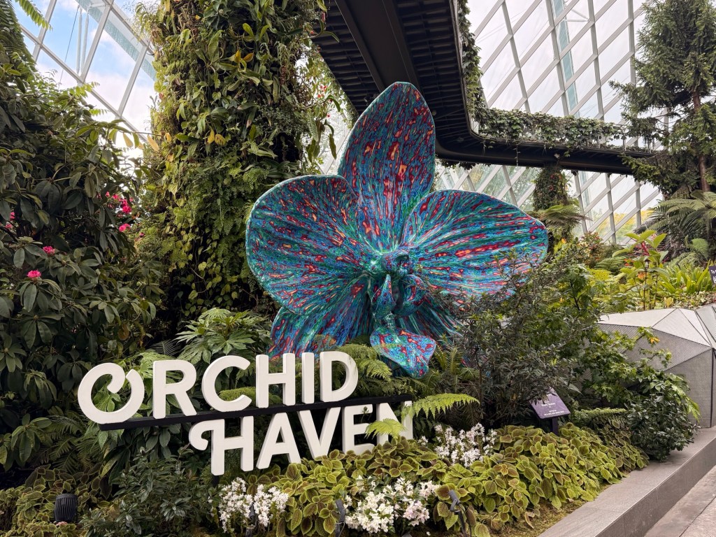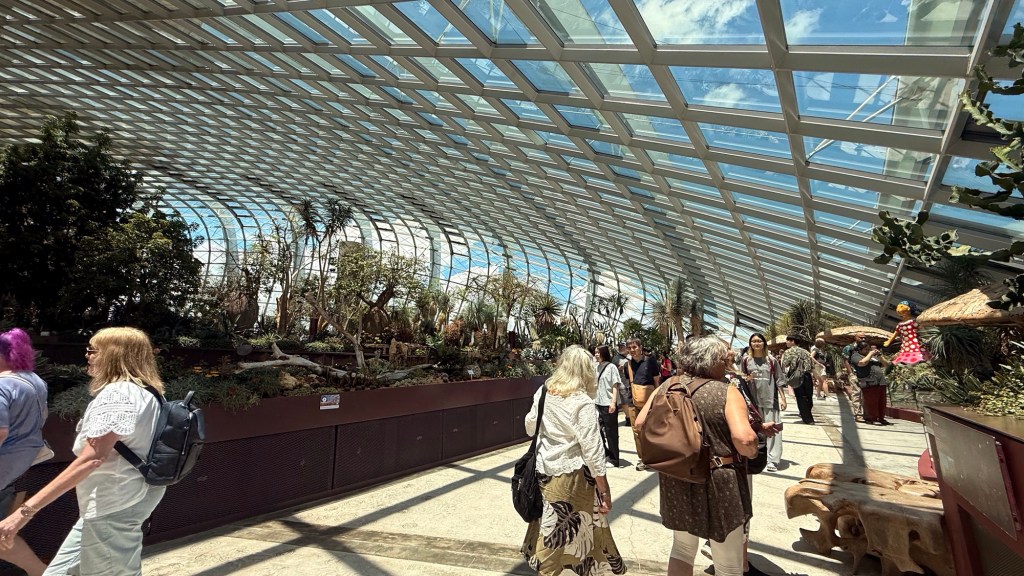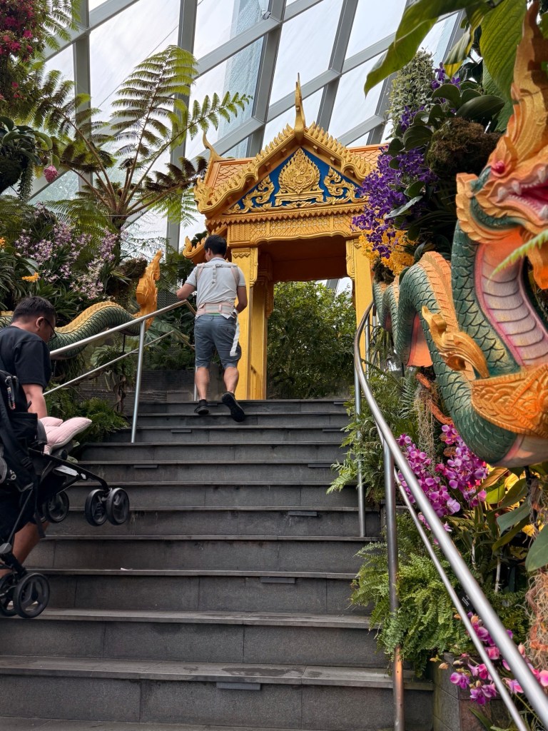 Another beautiful place we saw on the first day in Singapore…the Cloud Forest. It has one of the tallest inside waterfalls in the world. Again, this is inside a glass dome building with no support beams. The flowers/plants in this dome, are predominantly orchids but with some other tropical plants.