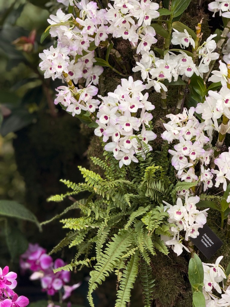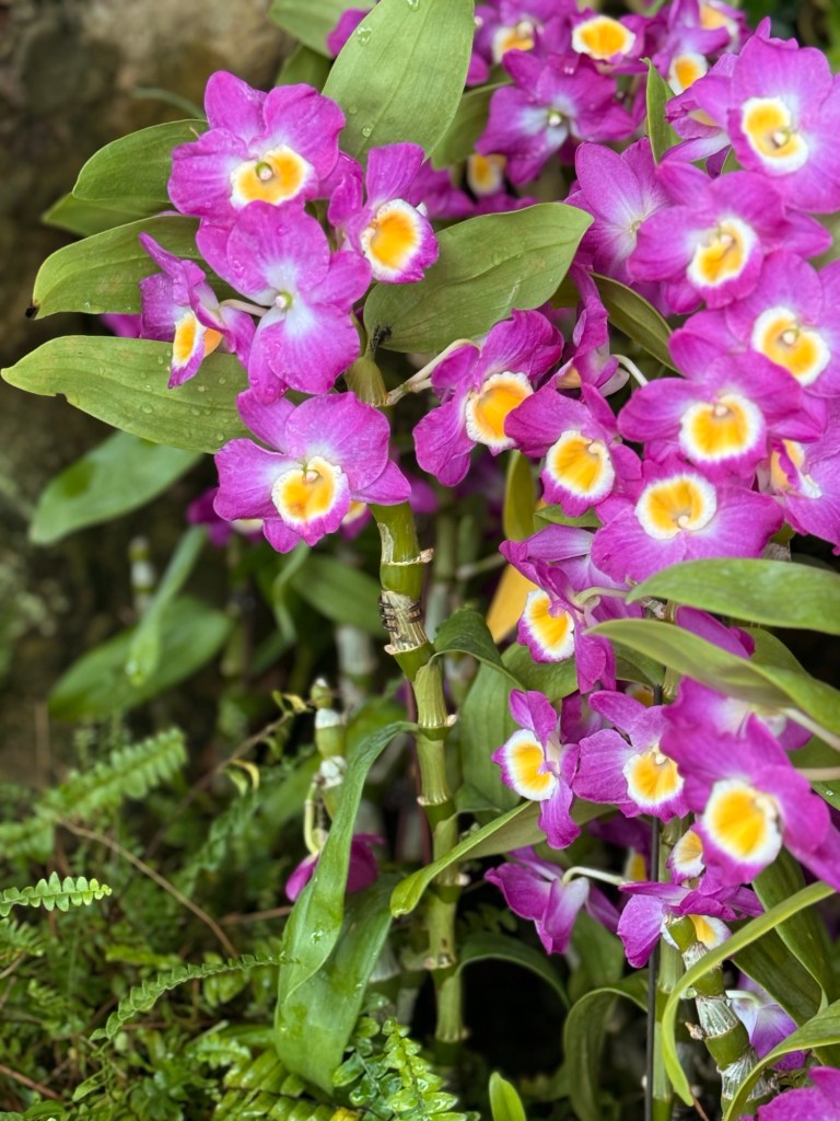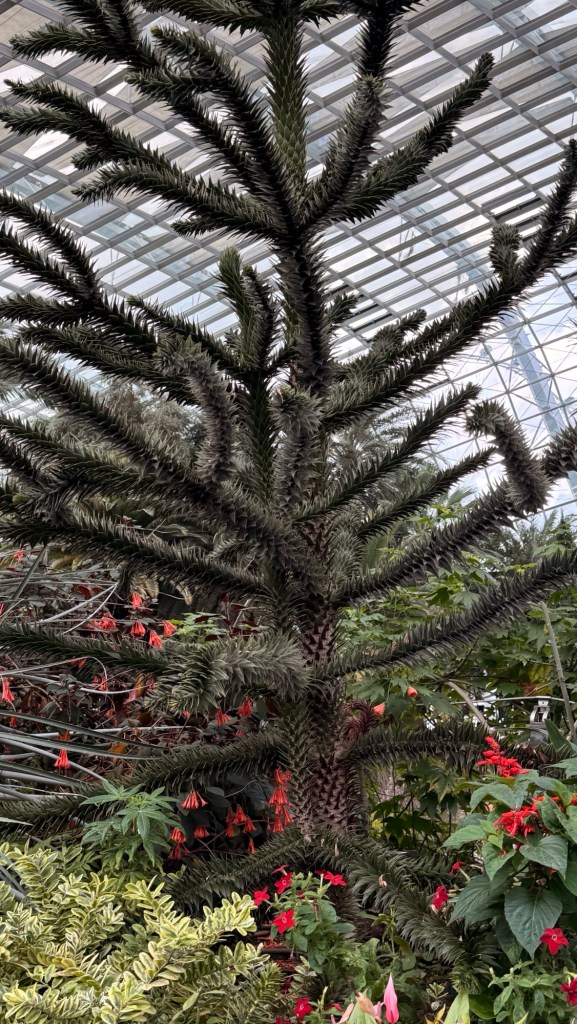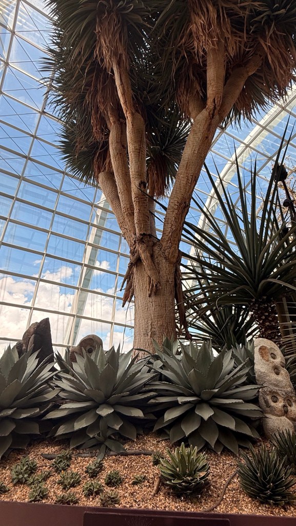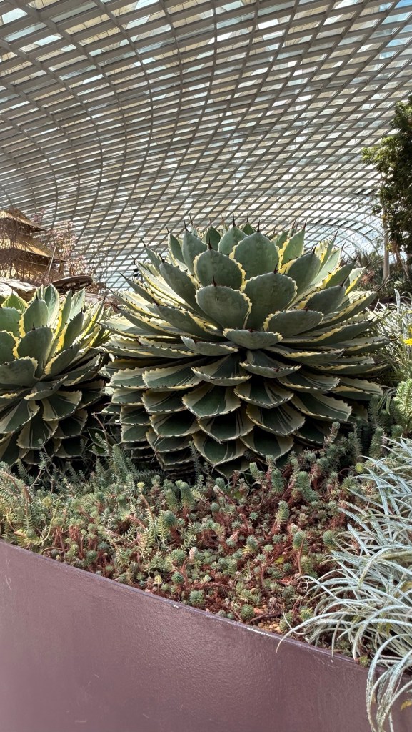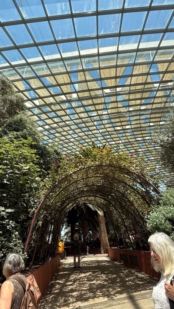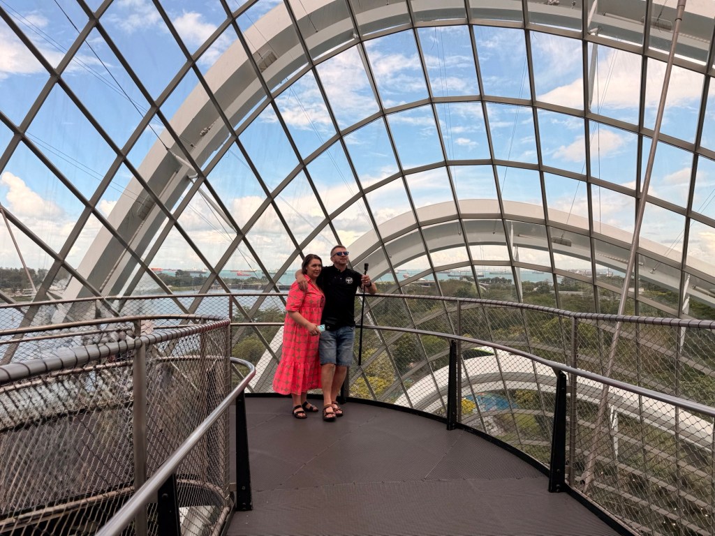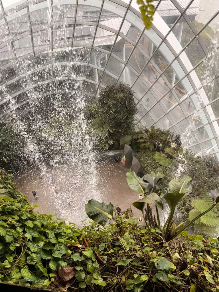 Another beautiful place we saw on the first day in Singapore…the Cloud Forest. It has one of the tallest inside waterfalls in the world. Again, this is inside a glass dome building with no support beams. The flowers/plants in this dome, are predominantly orchids but with some other tropical plants.