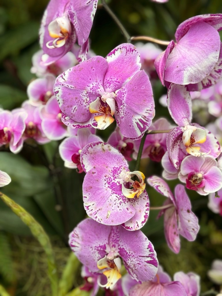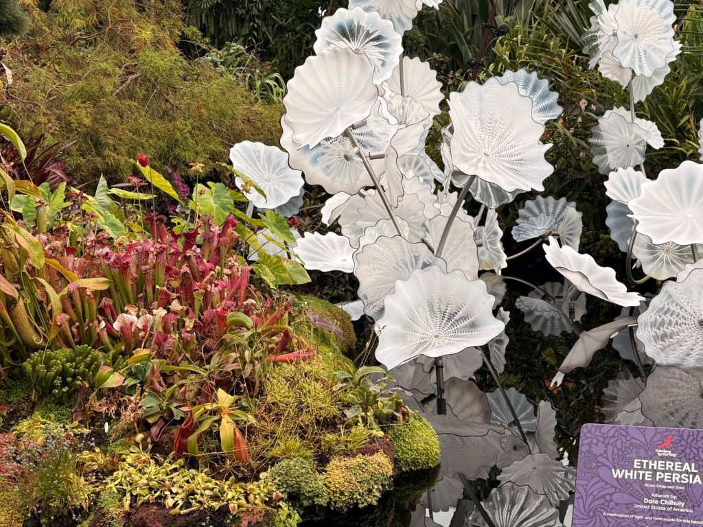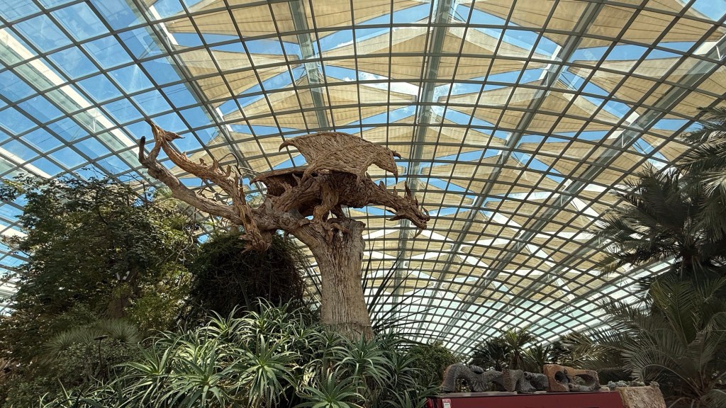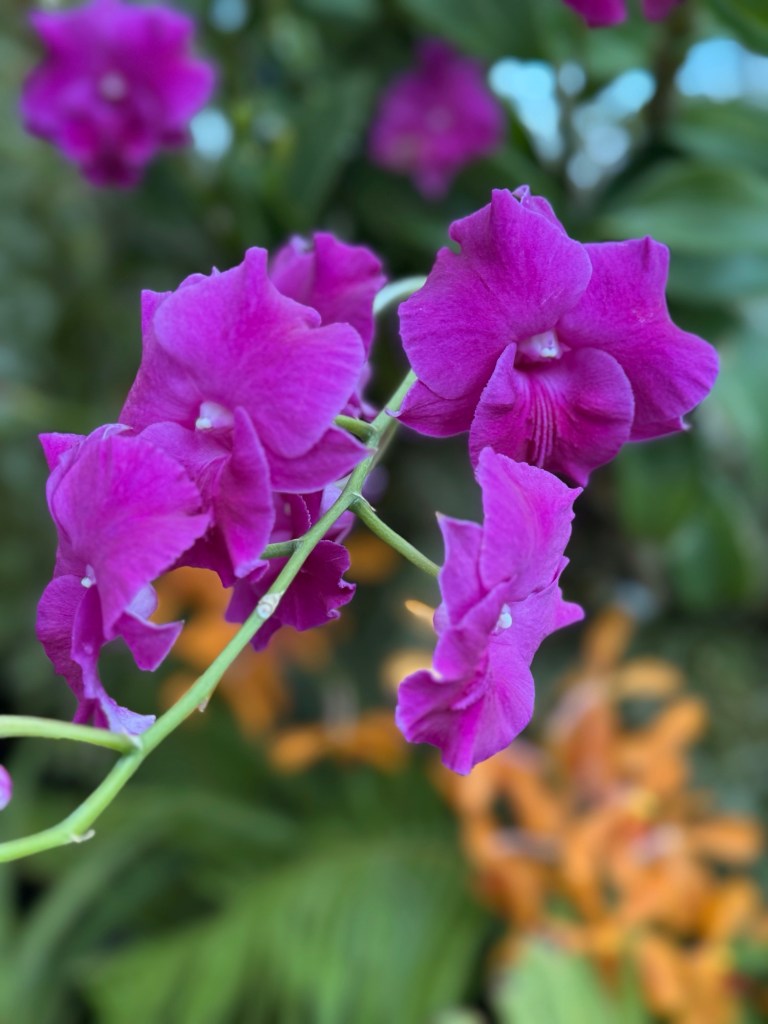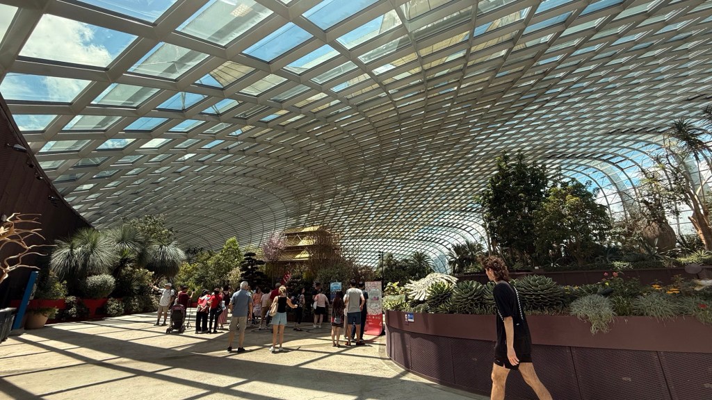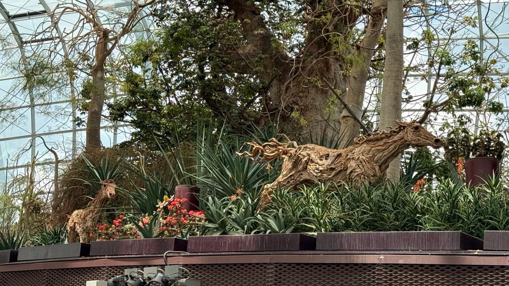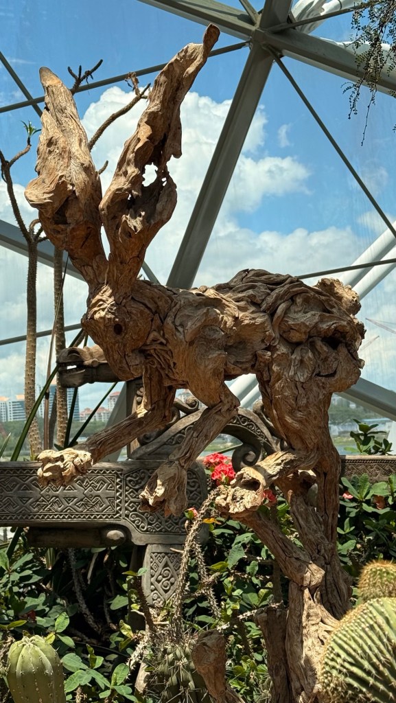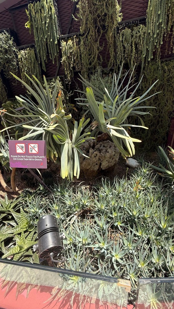 Another beautiful place we saw on the first day in Singapore…the Cloud Forest. It has one of the tallest inside waterfalls in the world. Again, this is inside a glass dome building with no support beams. The flowers/plants in this dome, are predominantly orchids but with some other tropical plants.