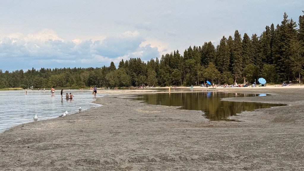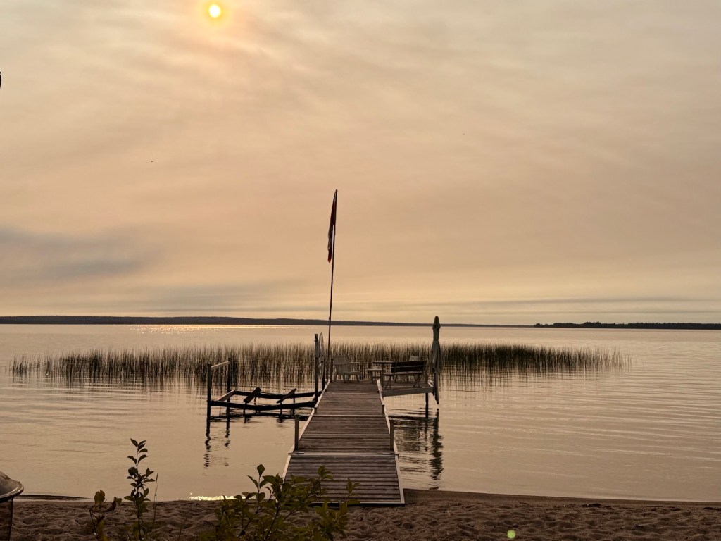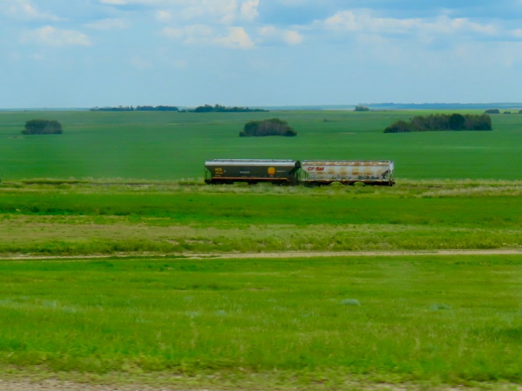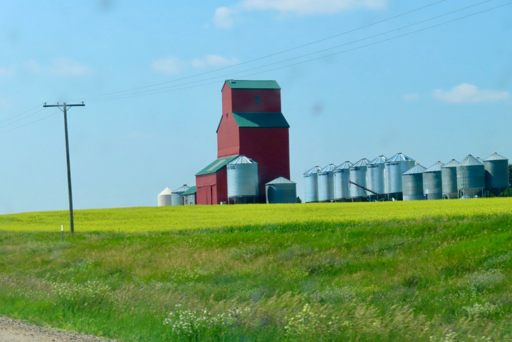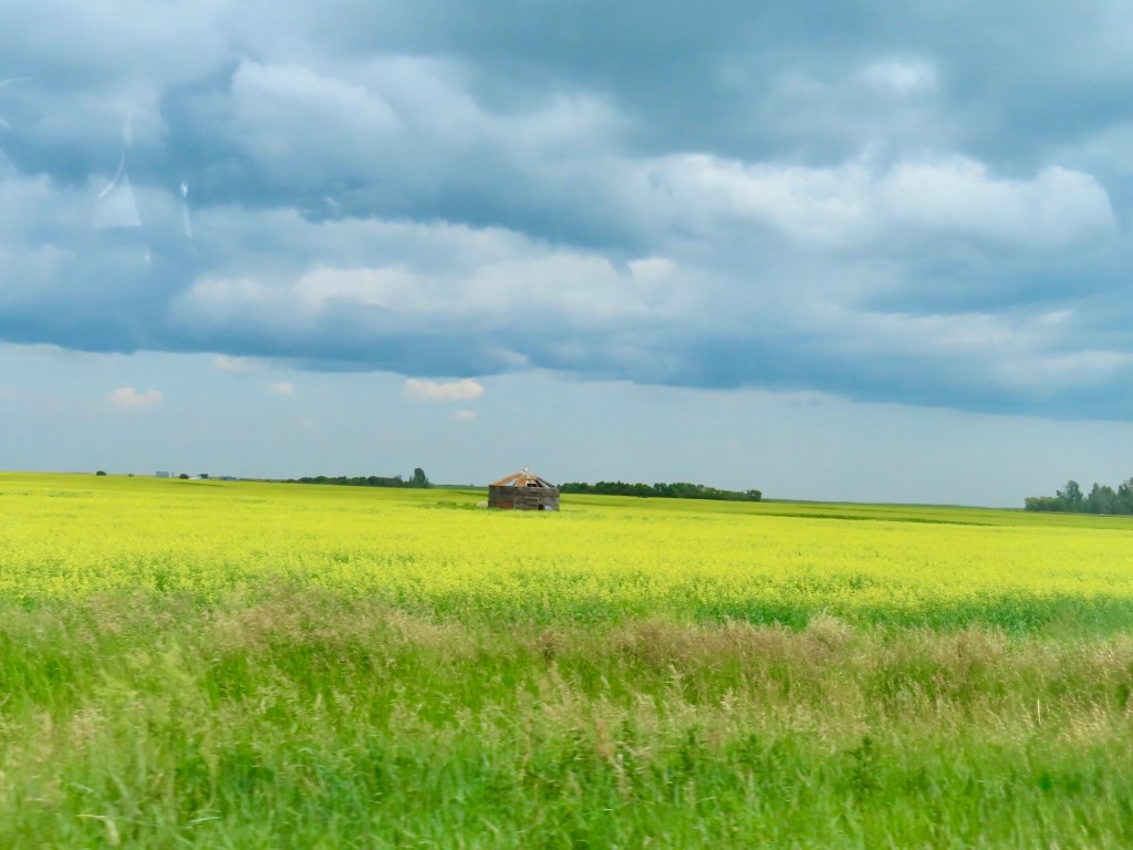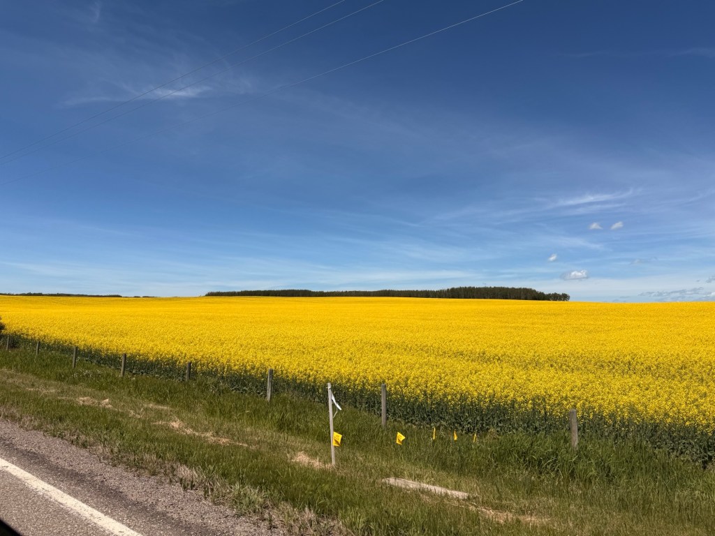 Next it was driving through lots and lots more florescent yellow fields of canola on the flat prairie highways of Alberta and Saskatchewan.  I stopped at the airport in Saskatoon to pick up a friend coming from Victoria.  Together we travelled to see our friends that live in Prince Albert, Candle Lake and Waskesui Lake. We had first met them in Guayabitos, Mexico.  For a time it looked like we wouldn’t be travelling to those northern reaches because of forest fires but they managed to get them under control .  So much of our country has had wildfires, each year it seems, getting worse and worse.  We did experience some smoke but it was not too bad.  One thing I was expecting was that temperatures would be stinking hot.  Because of the smoke in the air, even though low, helped to keep the temperatures down.  We spent July 5-10 in Saskatchewan then I travelled back to Alberta  on the 11th, this time to visit friends in Red Deer.