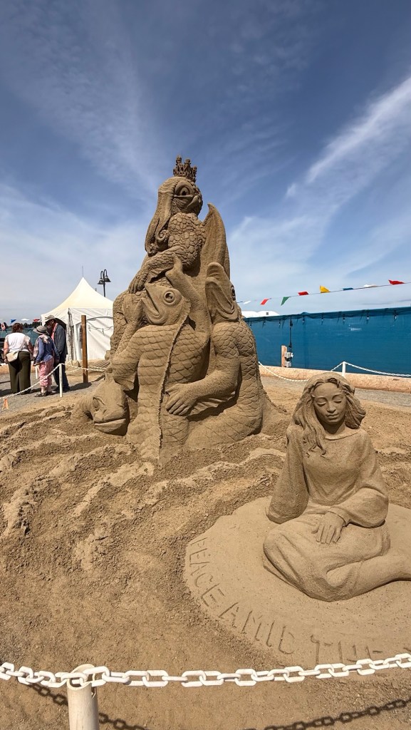 Amazing Parksville Sand Castle Competition Aug. 4/25. These are some but not all of the displays. You have to enlarge the pictures to get the detail that went into the sculptures. To do that click on “gailstraveladventures.net” that is in the email, to take you to the website. From there you should be able to click on the pictures to make them big.