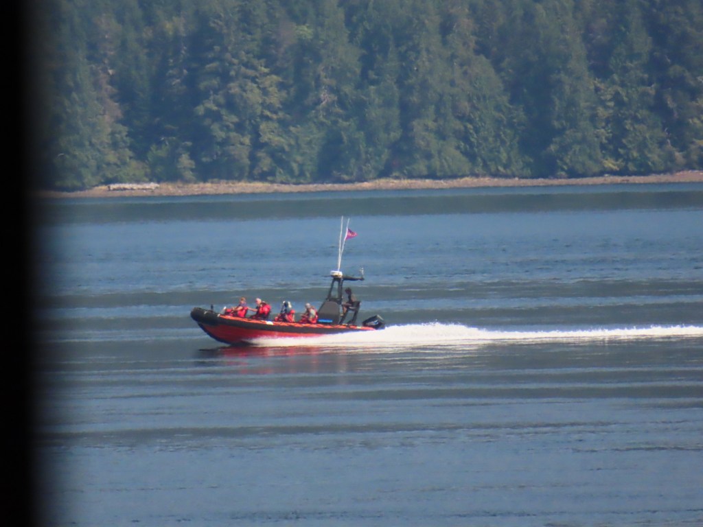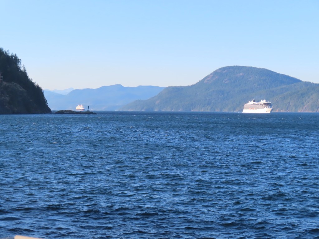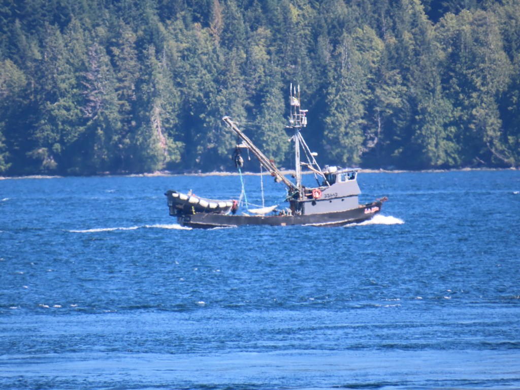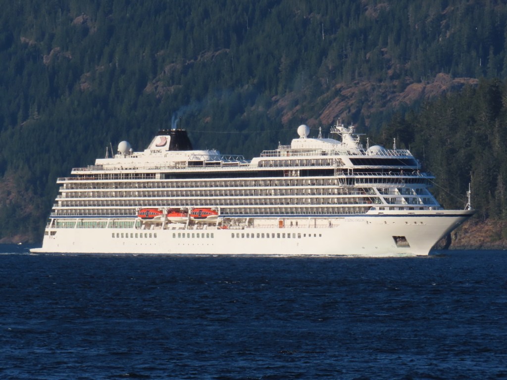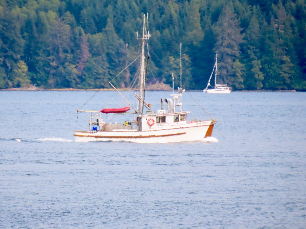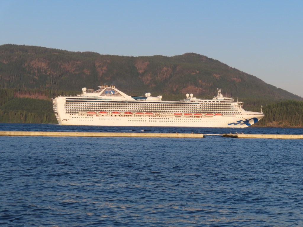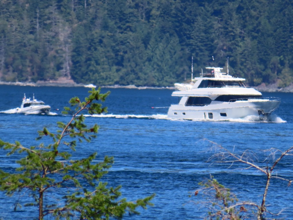 This is predominately an RV Park on the waters of Seymour Narrows. It is just north of the site of Ripple Rock where the world’s largest non-nuclear explosion happened in 1958. Because of that explosion and consequently the elimination of the major hazard to navigation, there are many ships of all different size and purposes, that travel up and down the coast using this route. Below are some of the ships that we saw pass through. Also included are scenes in the park including some very cool wood carvings. Besides being a RV park, it also has deep water docks and a very good restaurant (as well as a fish plant).
