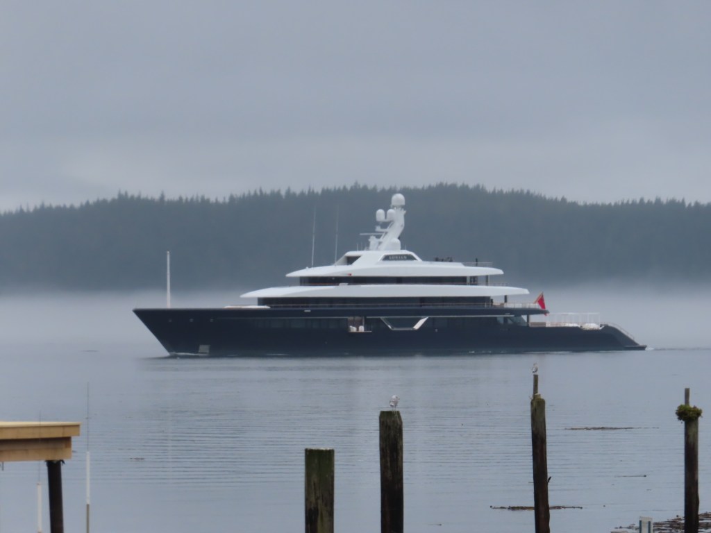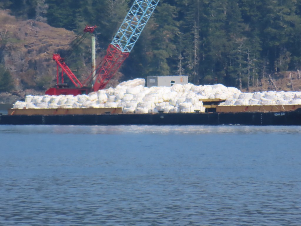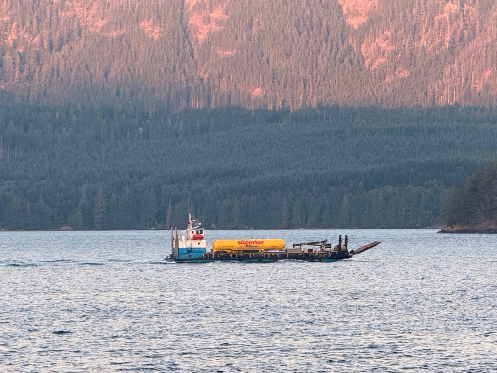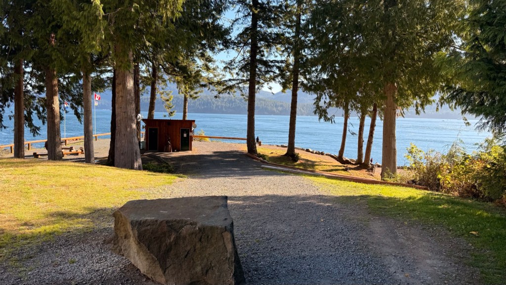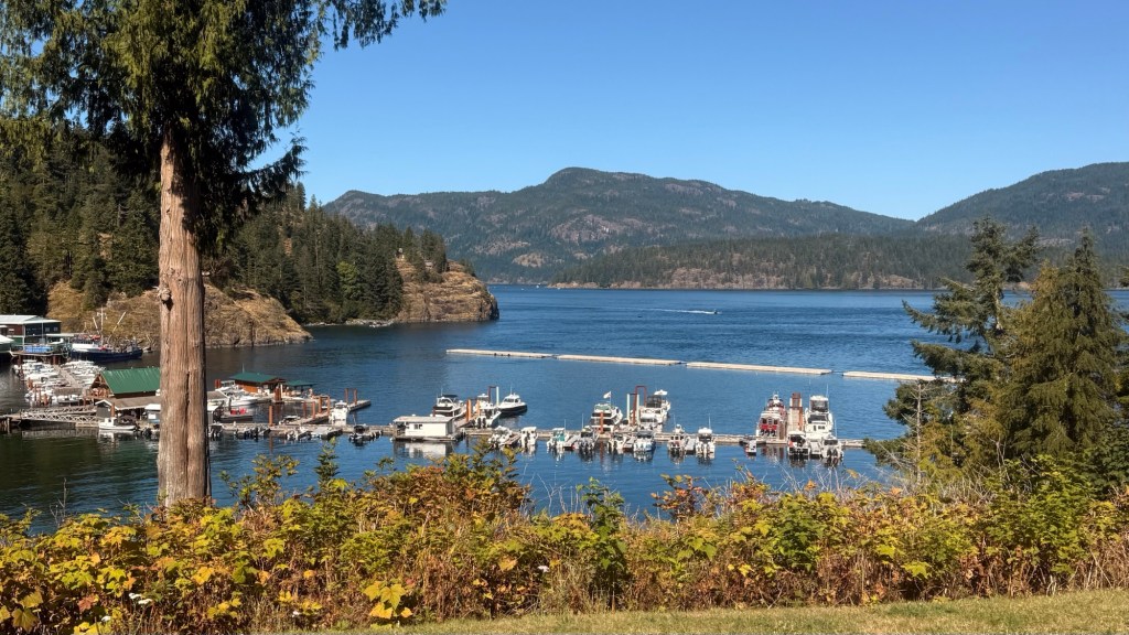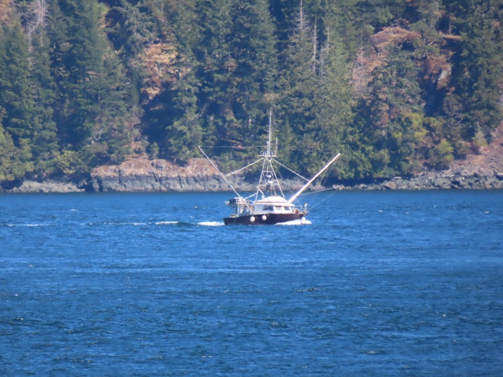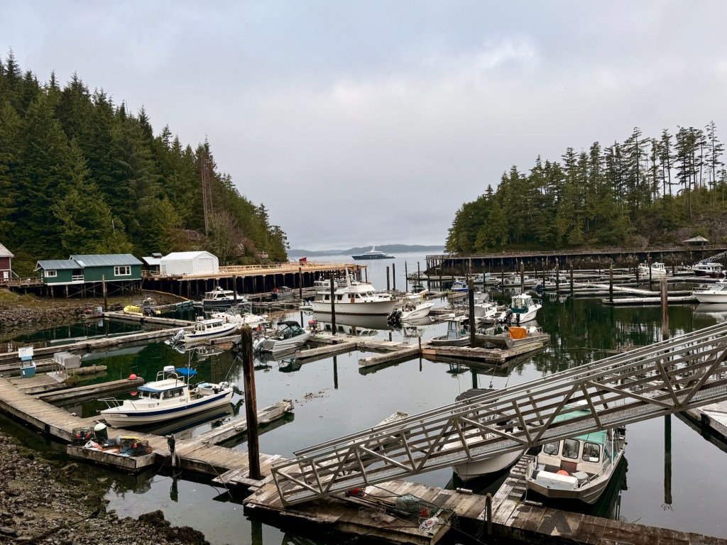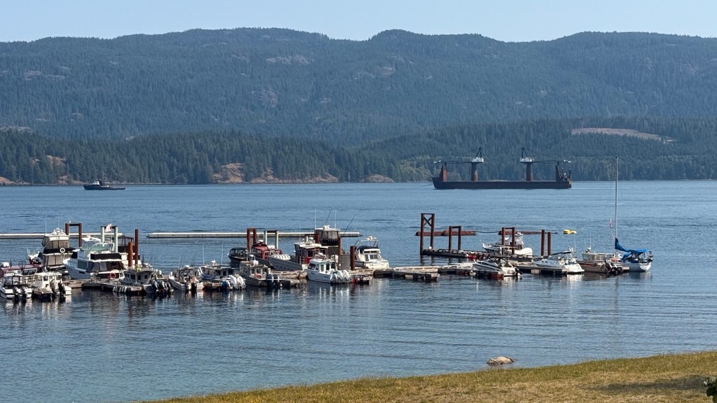 This is predominately an RV Park on the waters of Seymour Narrows. It is just north of the site of Ripple Rock where the world’s largest non-nuclear explosion happened in 1958. Because of that explosion and consequently the elimination of the major hazard to navigation, there are many ships of all different size and purposes, that travel up and down the coast using this route. Below are some of the ships that we saw pass through. Also included are scenes in the park including some very cool wood carvings. Besides being a RV park, it also has deep water docks and a very good restaurant (as well as a fish plant).