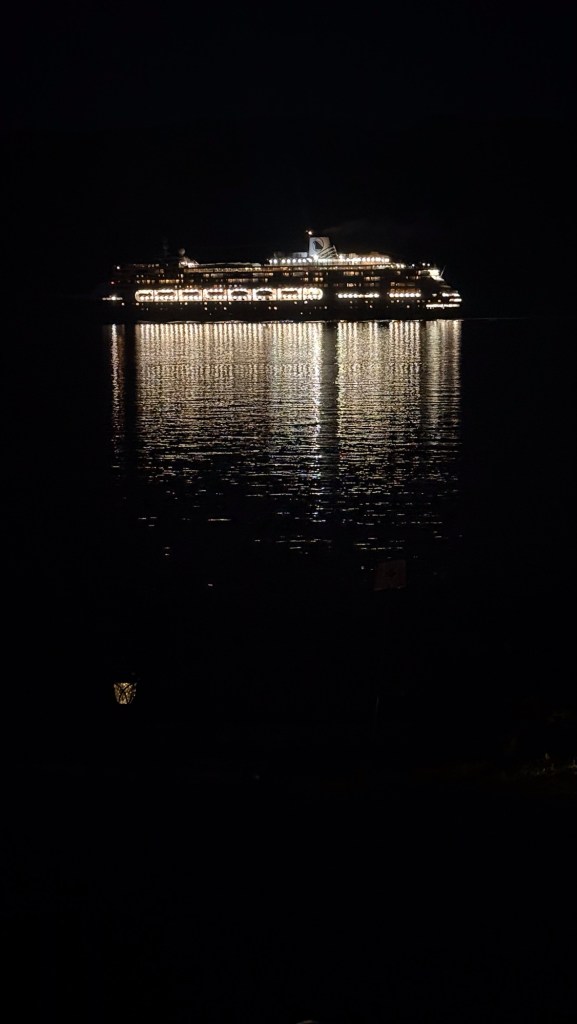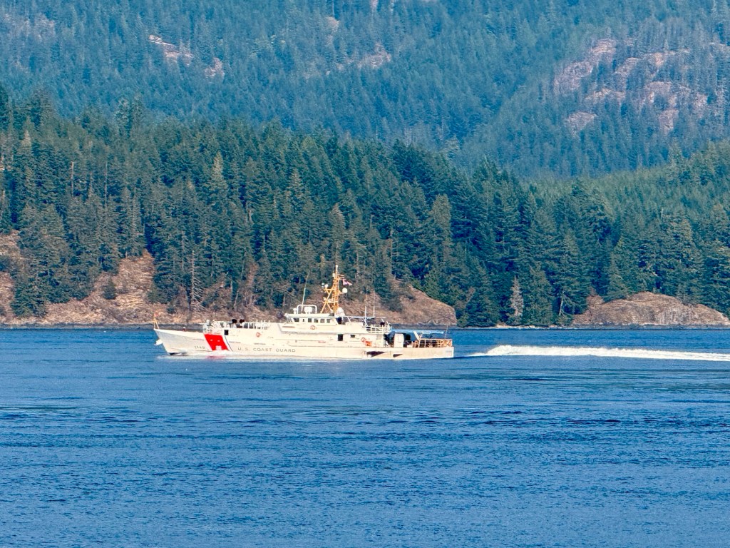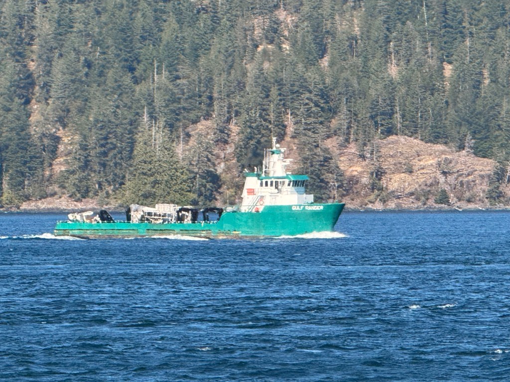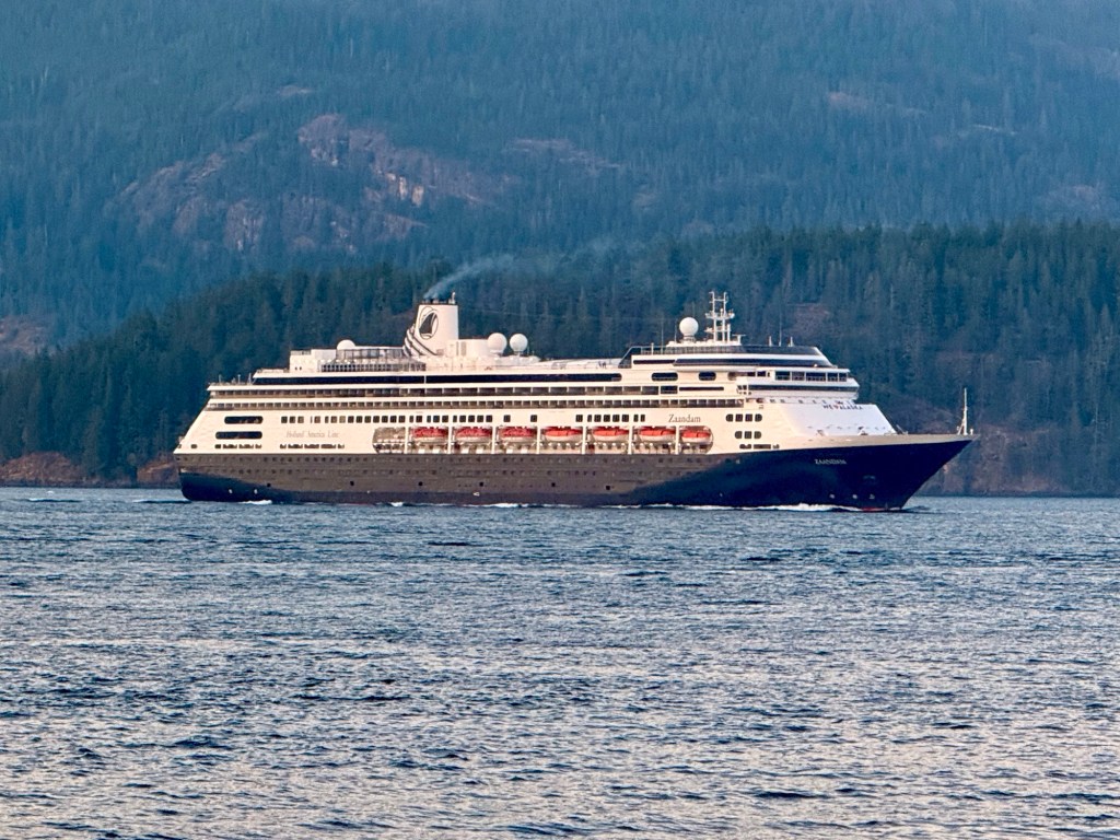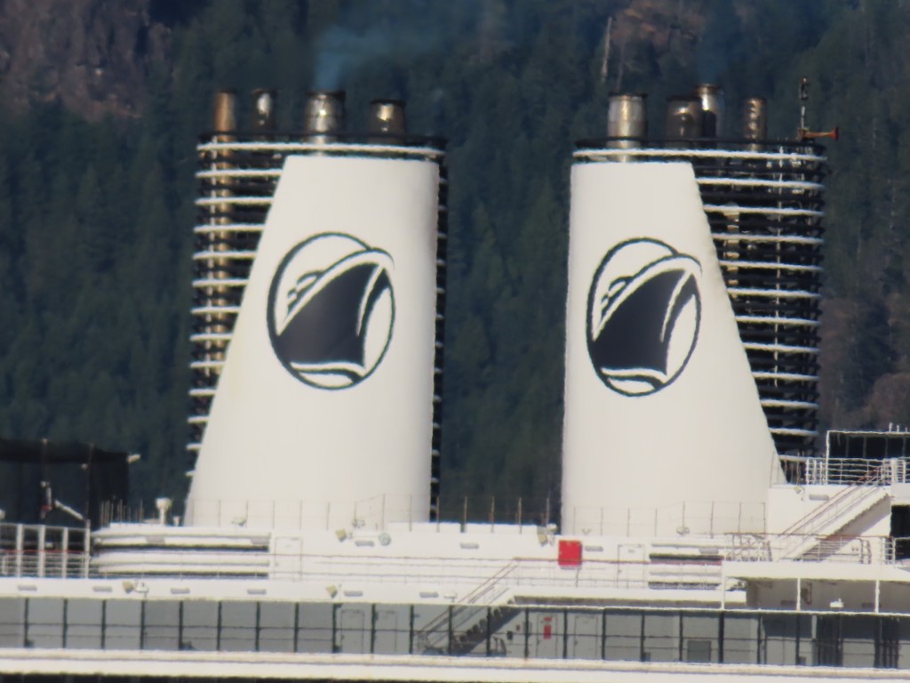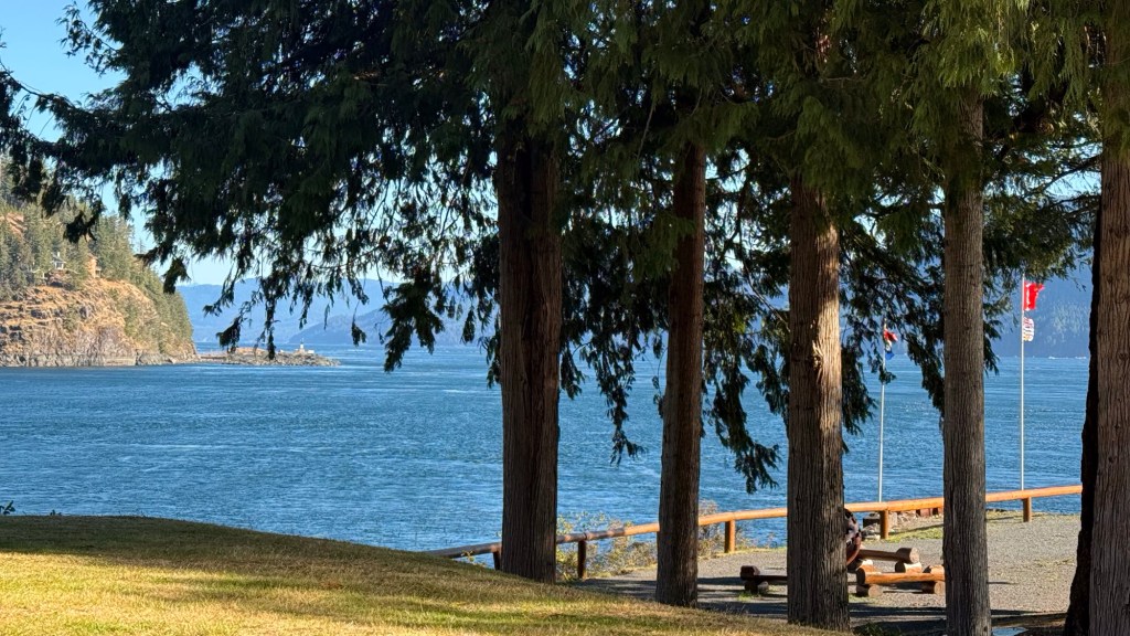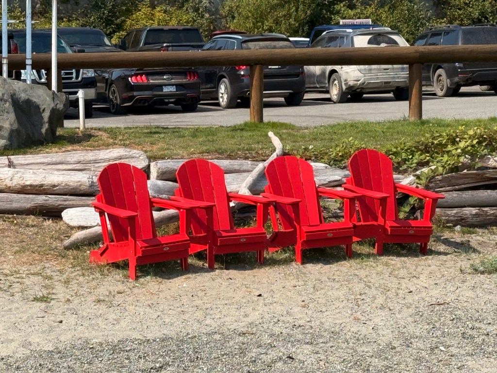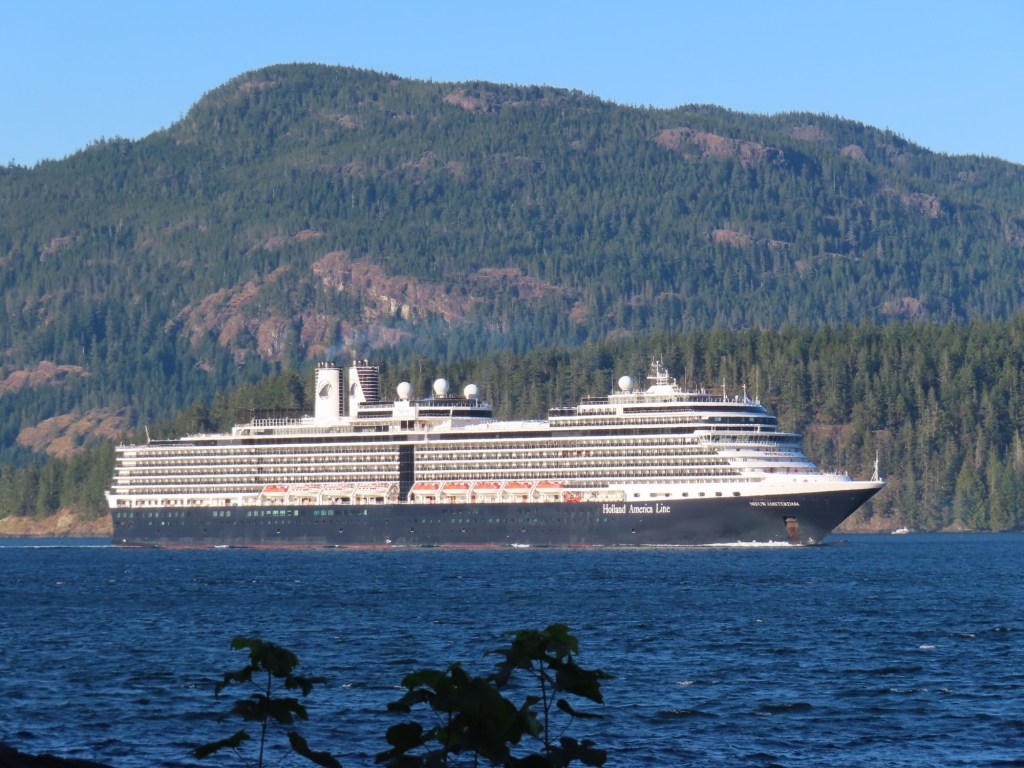 This is predominately an RV Park on the waters of Seymour Narrows. It is just north of the site of Ripple Rock where the world’s largest non-nuclear explosion happened in 1958. Because of that explosion and consequently the elimination of the major hazard to navigation, there are many ships of all different size and purposes, that travel up and down the coast using this route. Below are some of the ships that we saw pass through. Also included are scenes in the park including some very cool wood carvings. Besides being a RV park, it also has deep water docks and a very good restaurant (as well as a fish plant).