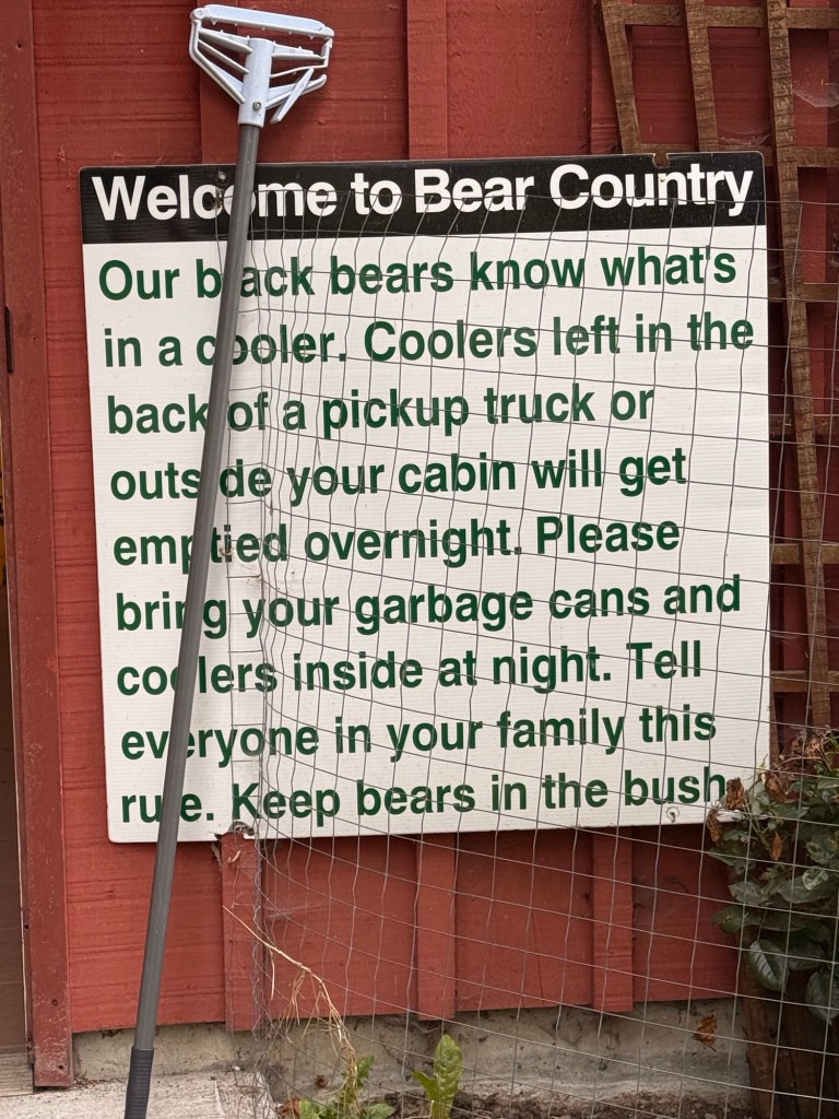 The drive in is on an old logging road. On the drive, probably because it is a little rough, there are signs saying how far to go.