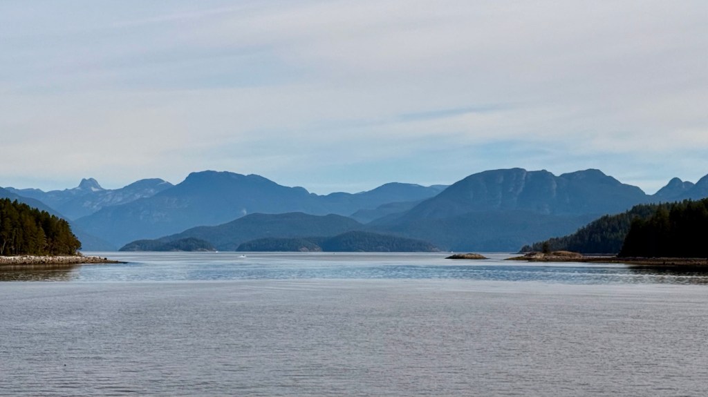 The follow are views of the Coast Mountains returning from Cortes Island
