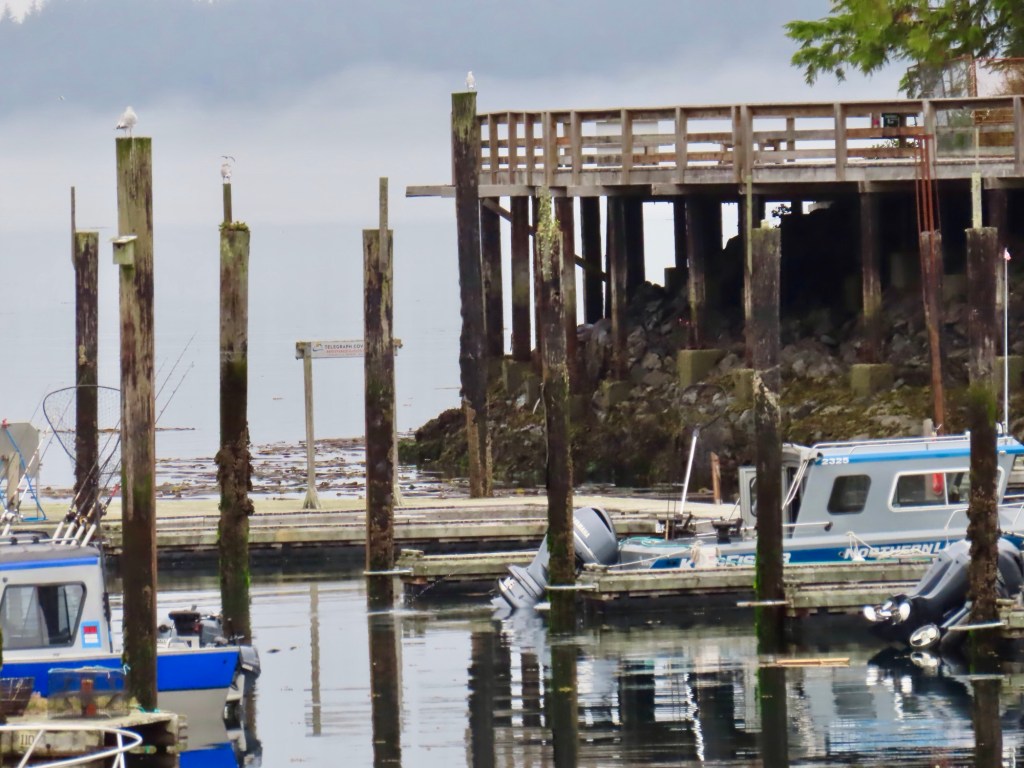 In between we drove up to Telegraph Cove to see the damage and progress that has been made since the fire that destroyed a part of the boardwalk, cafe and pub and the Prince of Whales offices and museum as well as a couple of houses, on New Year’s Eve 2024.