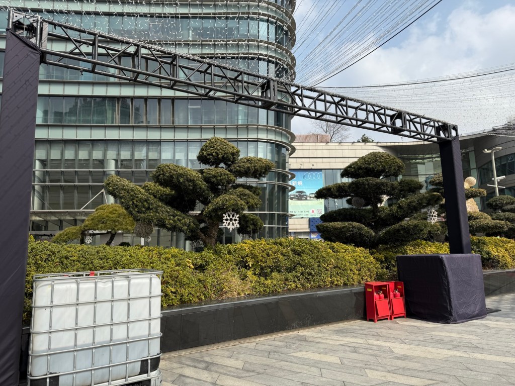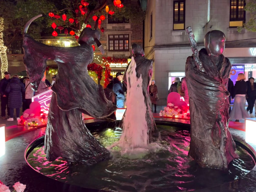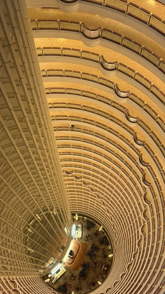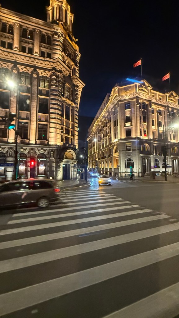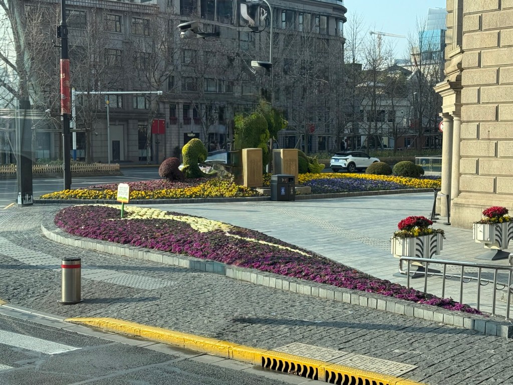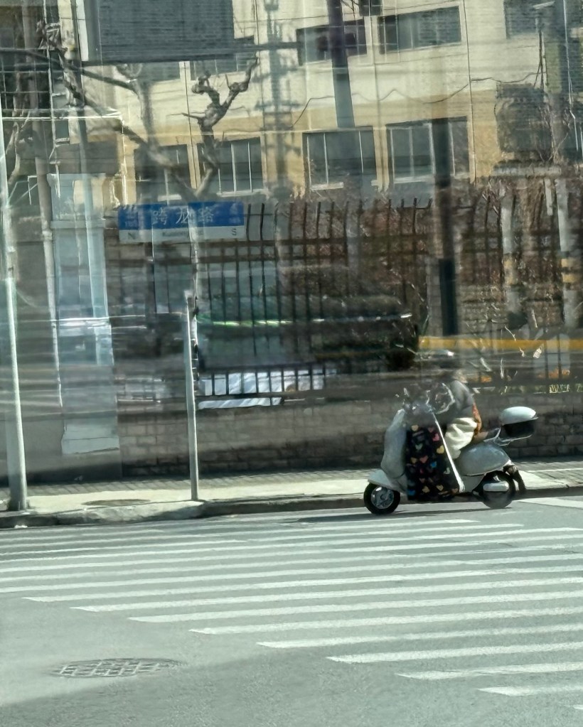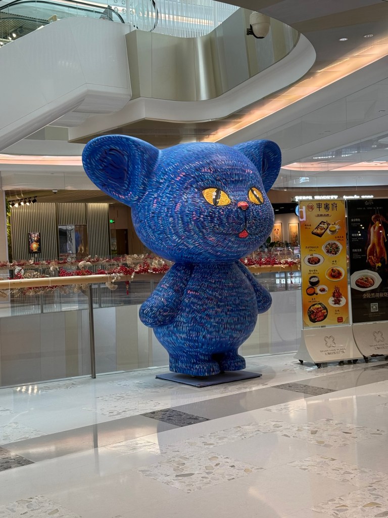 J and I don’t have any excursions booked so we went in search of a mall. It was strange to see hardly any vehicles on the streets…. Big wide empty streets. It’s still part of the New Years time so not much activity this early in the day. The architecture of the buildings both on this side of the Huangpu River and the Pudong, are spectacular. It is absolutely amazing. There are lovely parks and huge jungle Jim type facilities as well as a skating rink for kids outside the mall. When we decided to return to the ship, we couldn’t find the access to return to the ship even if you could almost touch it. We have gotten our quota of steps in already and the day is only partly over. The sun is trying to shine but there is a lot of smog in the skies and it is quite cool…. At most only 8C. today.