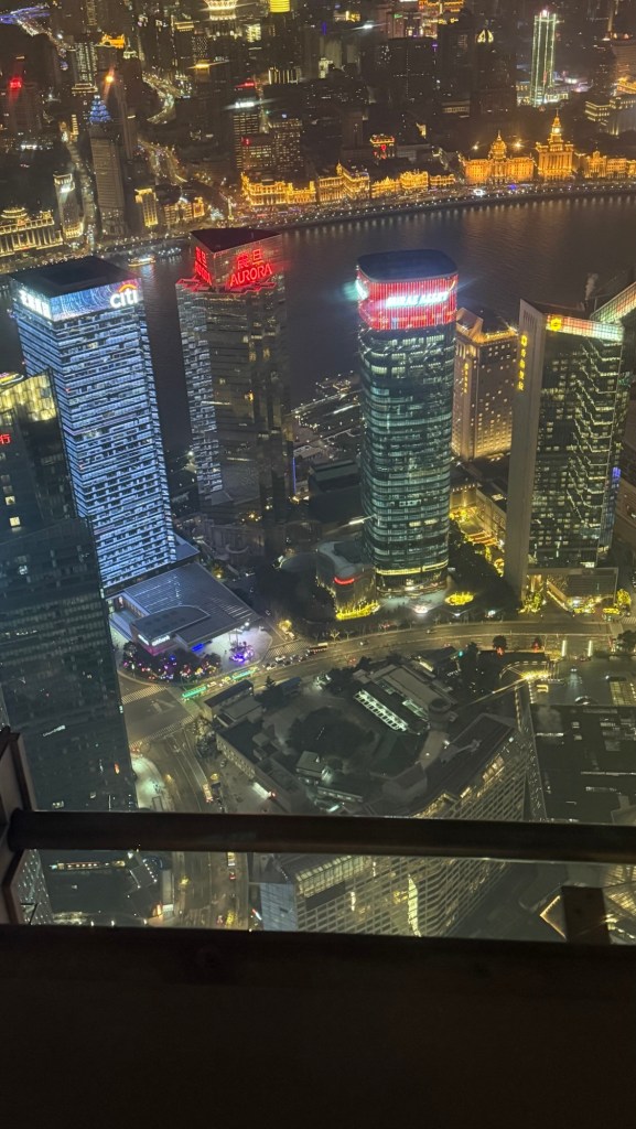 Later L and I went on an excursion called Shanghai by night. The bus took us through the tunnel under the Huangpu River to the Pudong area… the area that was only started to be built in the 1990‘s…… amazing architecture. Formerly it was only farmland. Because it is still the New Year celebration there are now huge number of people out and about now. Our first stop ….. (that we had to wait atleast an hour in lineup), was to the 88th floor of the JinMao tower.