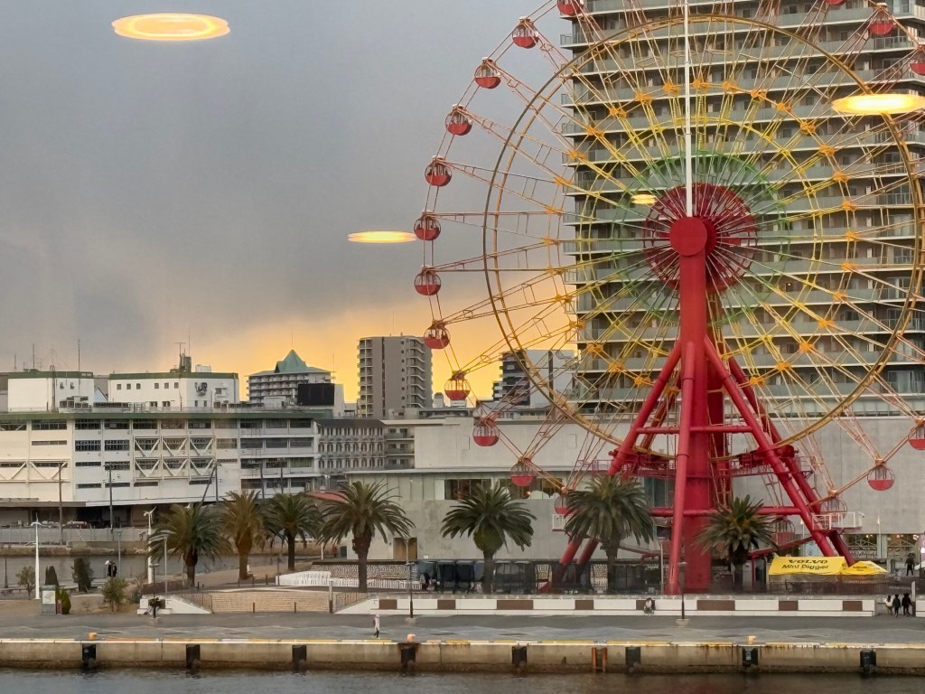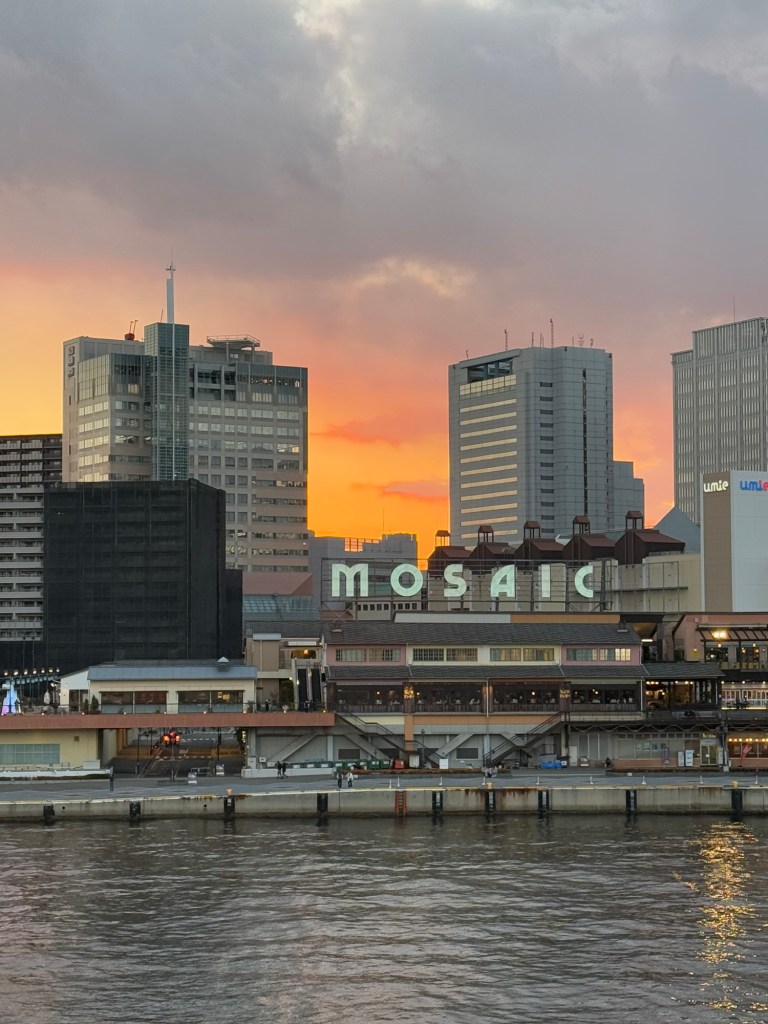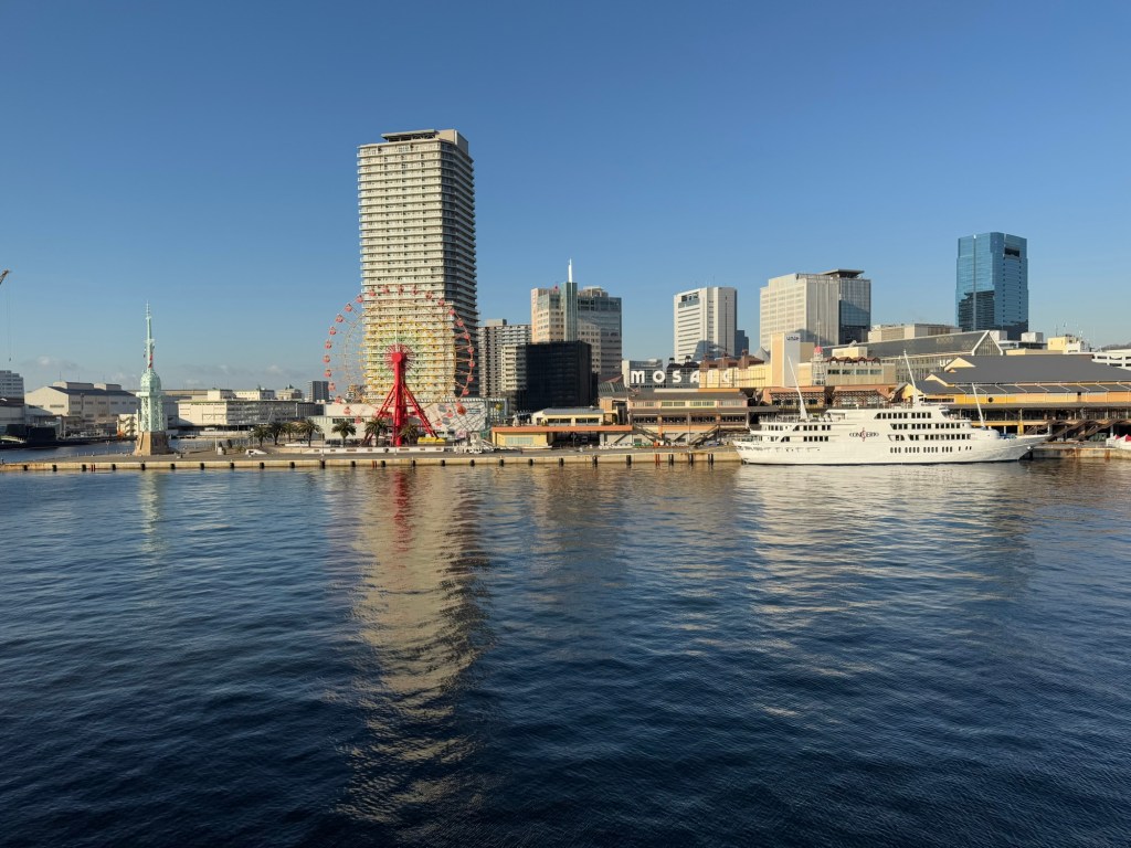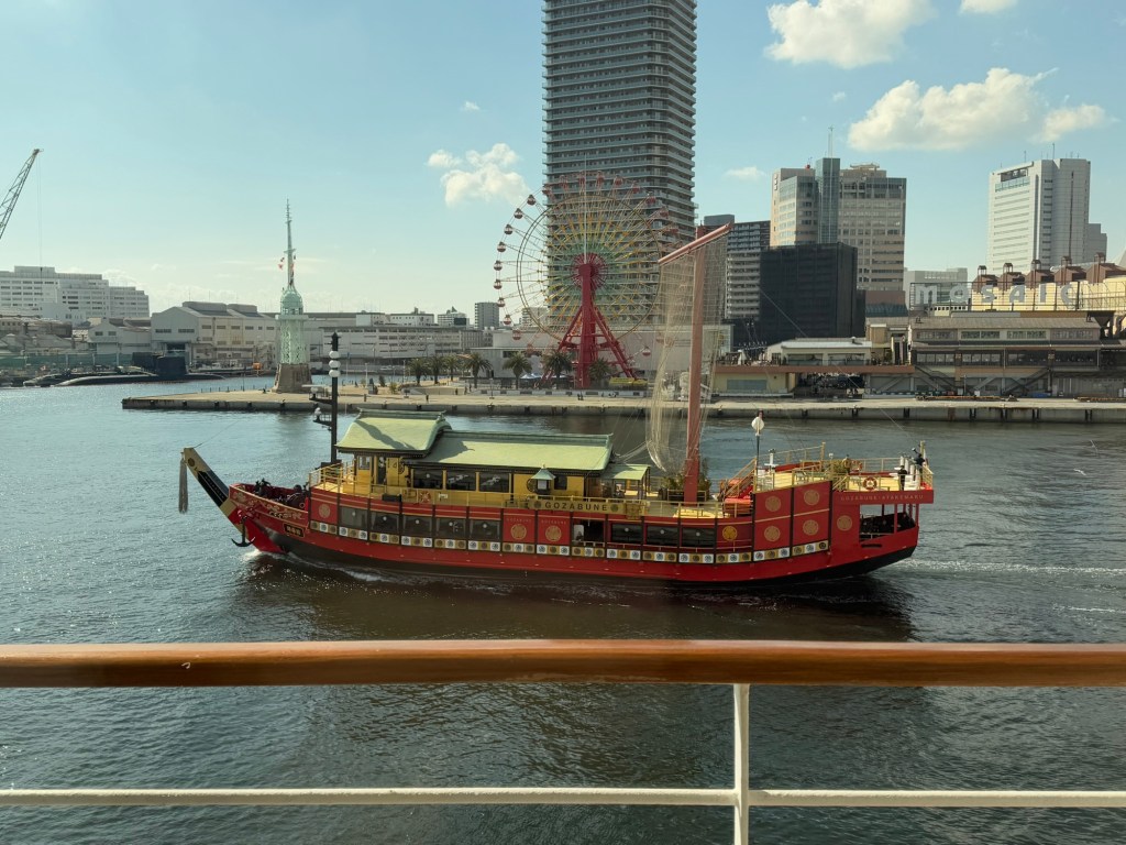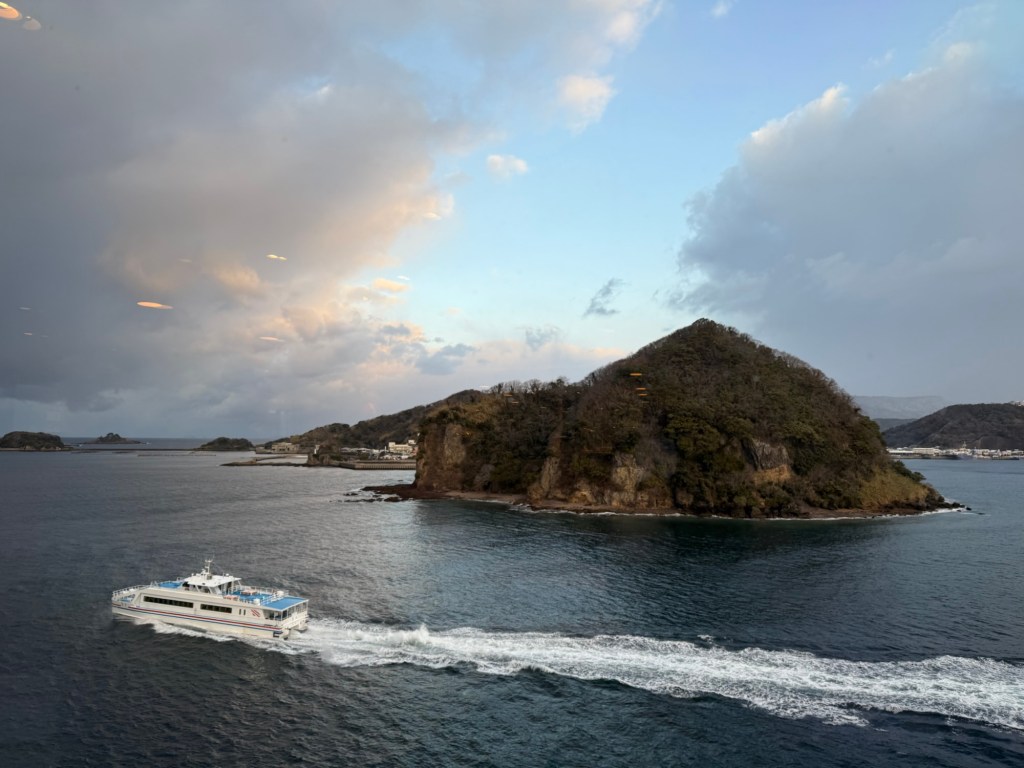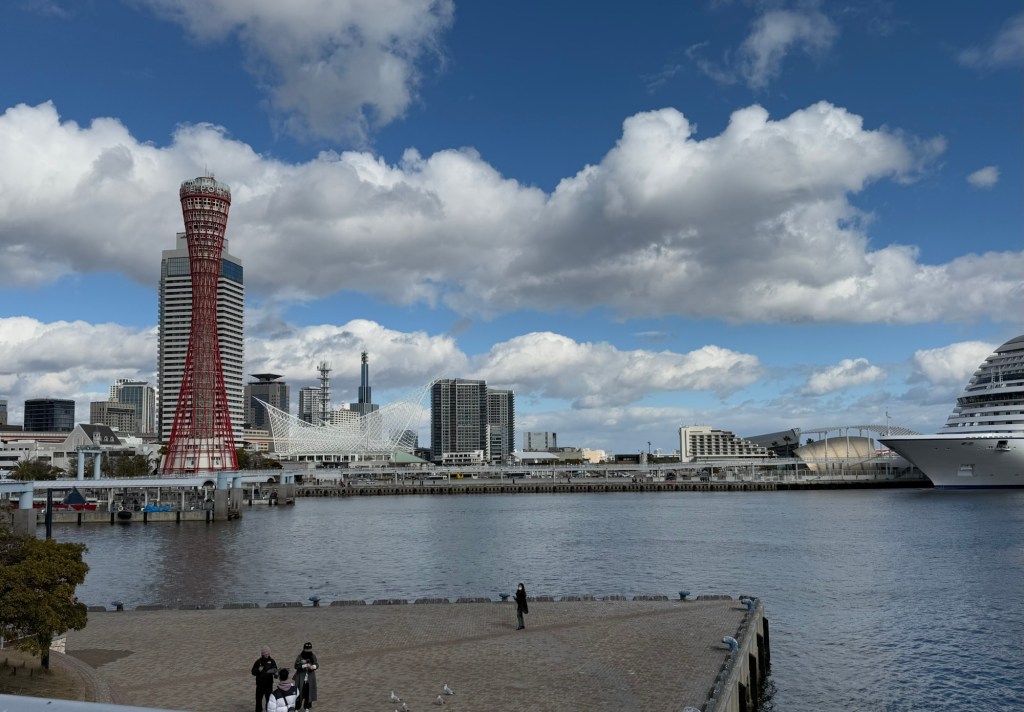 The weather since leaving Busan especially, has been wrecking havoc with our itinerary. We were supposed to go to Hiroshima …. yesterday. That was the whole reason we took this leg of the cruise. It was cancelled because of the inclement weather. It was really quite bad. In Busan, S Korea when were about to leave, it felt as low as -12 C because of the wind. They had mentioned that the strait that we would have had to go through was too treaturous to navigate in these winds. When I looked in the map, I totally get it. Next scheduled stop was Kochi but they don’t have proper facility for arriving passengers…. (Immigration). That would have been done at Hiroshima so now we go to Kobe earlier than planned.., spending an extra part day there. At this moment, it is bright and sunny, the seas have just a little chop and it’s slightly warmer than it has been.