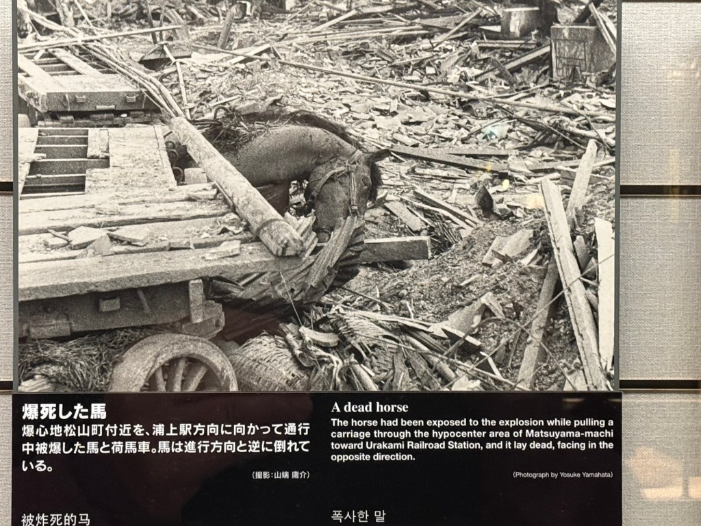 Pretty much everything was levelled“Fat Boy” was the bomb that hit NagasakiTerrible scars from burns Mother and childMelting point of steel is 1200+C. The bomb that was dropped had temperature of 3000-4000C…. In 3 seconds. Dead horse that was pulling a cartWhere all the stored nuclear weapons are in the world Tell me that this doesn’t affect you…. This and the previous quoteIf this doesn’t affect you, I don’t know what will. This should never be allowed to happen again.