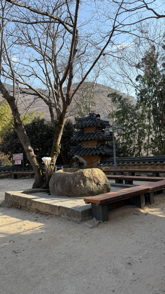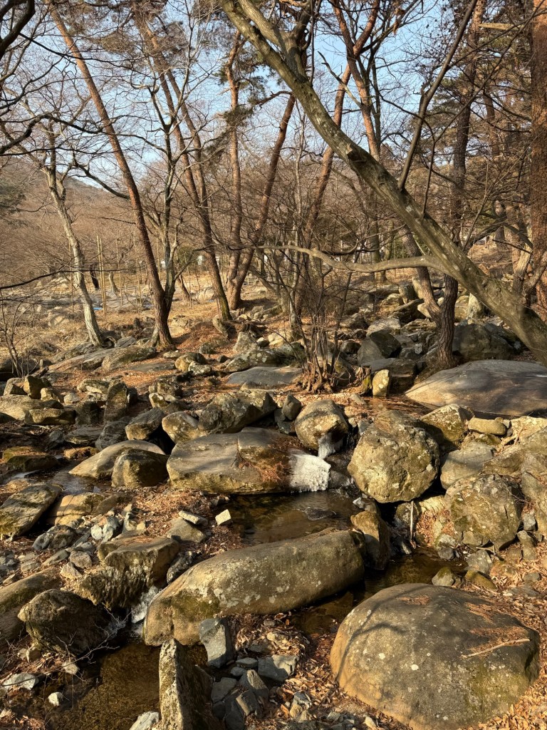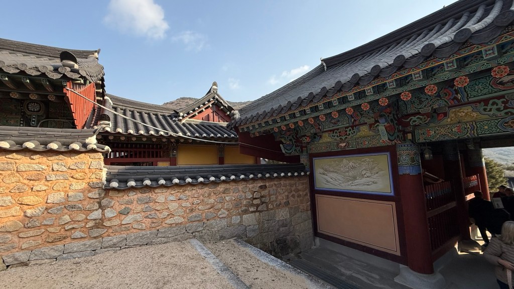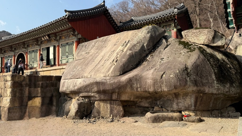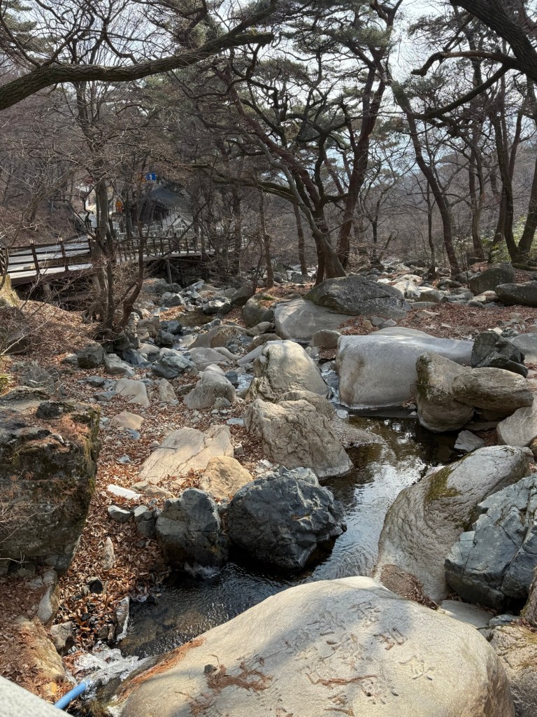 Beomeosa Temple was built 678 AD…over 1300years ago. Mountain is called “wishing well”. The area is quite lovely with big boulders placed along stream with along the running water.