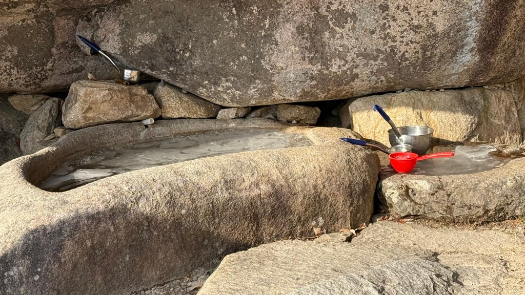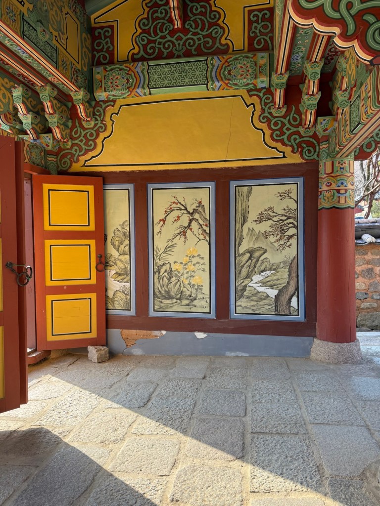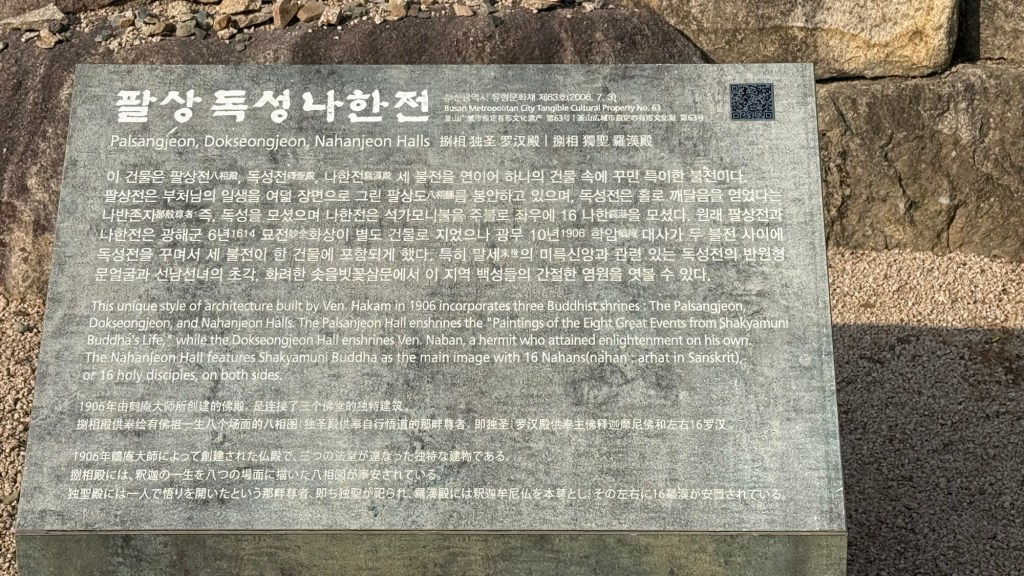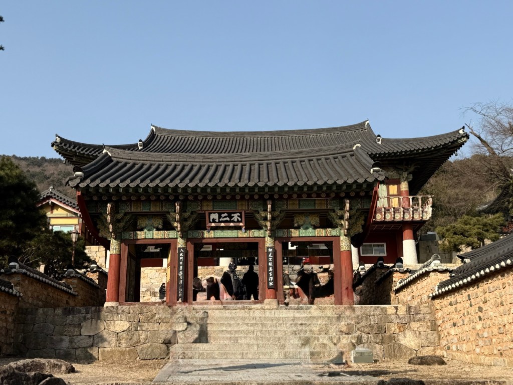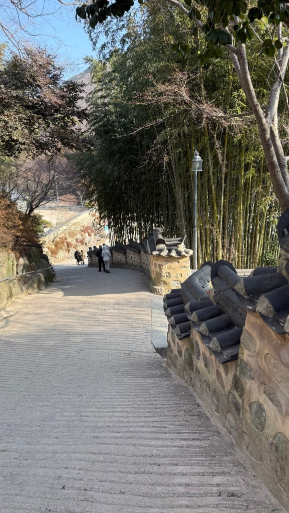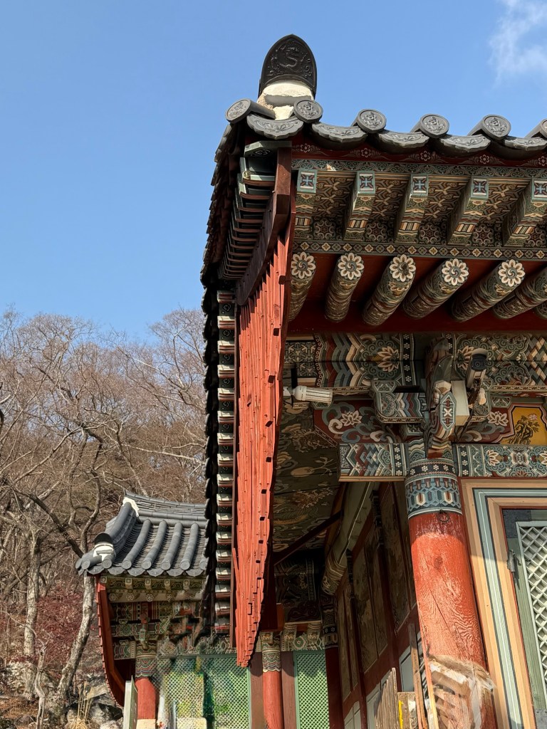 Beomeosa Temple was built 678 AD…over 1300years ago. Mountain is called “wishing well”. The area is quite lovely with big boulders placed along stream with along the running water.