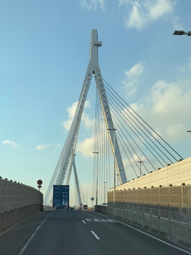 Osaka airport is on a man-made island. And Kobe has one too…. on man-made island. Huge number of warehouses. No beach anywhere to be found.