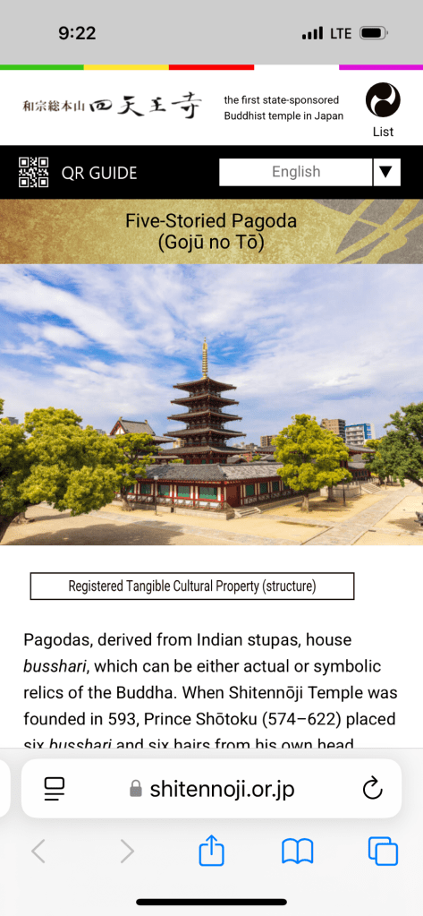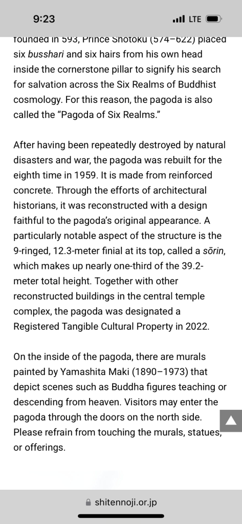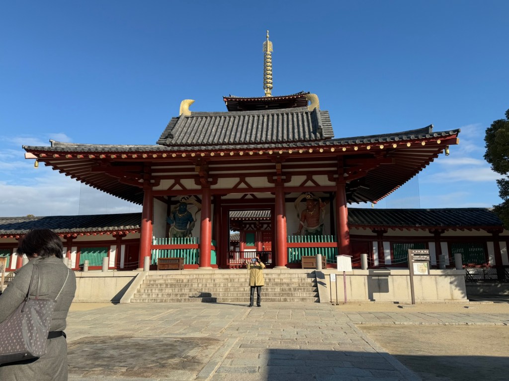 Shitennoji Temple ….. Inside main…. 4 warriors guarding Buddha…. all incl. Buddha are wooden… beautiful carving and paintings but sorry, not photos allowed.