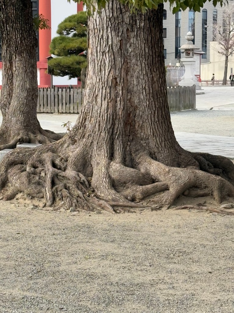 Many times you will see Shinto gate in same area of Buddhist temples. Shinto gods are a manifestation of of Buddhist divinities according to the powers that be. Toyotomi Hideyoshi, the feudal lord that built the Osaka Castle, believed that the Buddhist temples are a natural barriers against intruders esp. Christians. Where the temple is, it used to be near the ocean shores. Most Japanese are Buddhist although they overlap with Shintoism religion. Today is a holiday……National Foundation Day. There isn’t much traffic.
