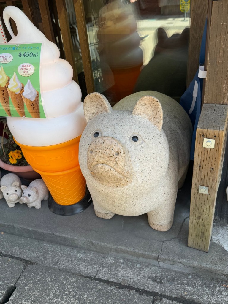 Volcanic soil covers 2/3 the land in this area. Sweet potatoes are a huge crop. Pigs eat sweet potatoes…. makes them more tender. Kagoshima is a big producer of pork, beef and chicken., also “Shochu” alcohol made from sweet potatoes (& rice).