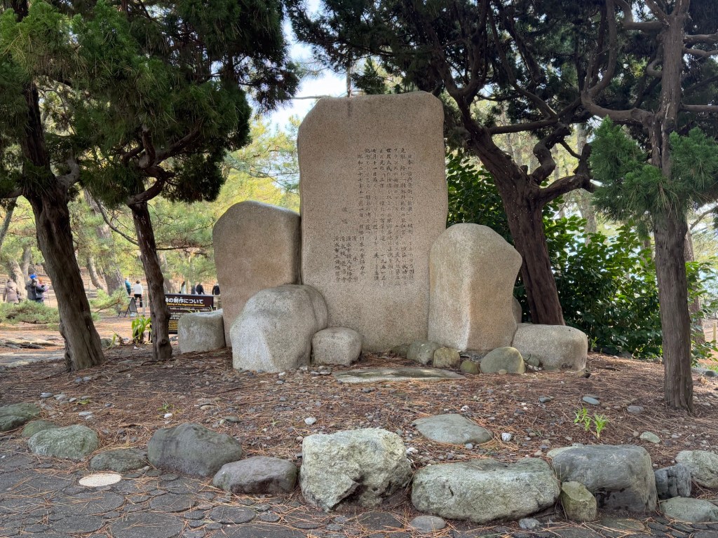 It was kind of “coming out” for this 20year oldSo adorable!Tokugawa IeyasuMandarin orange tree planted by shogun 400 years agoMade in the image of the sea in the foreground, sand on beach, followed by tea bushes and finally Mt. Fuji Steps down