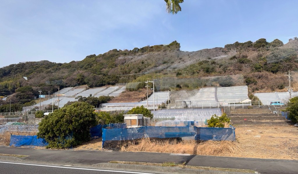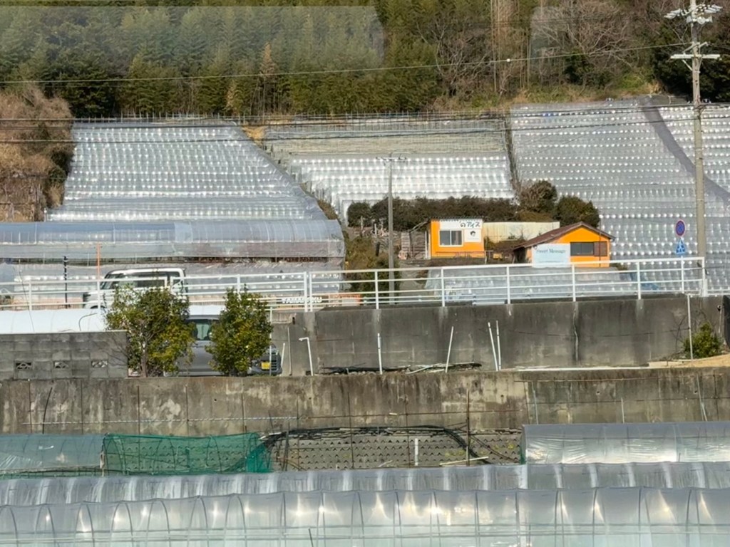 Strawberries produced in greenhouses built on rocks. As a result the heat created from the rocks make them eco friendly. Season is from December to June. The area covered by these greenhouses go in and on….. massive. They must feed all of Japan with strawberries.