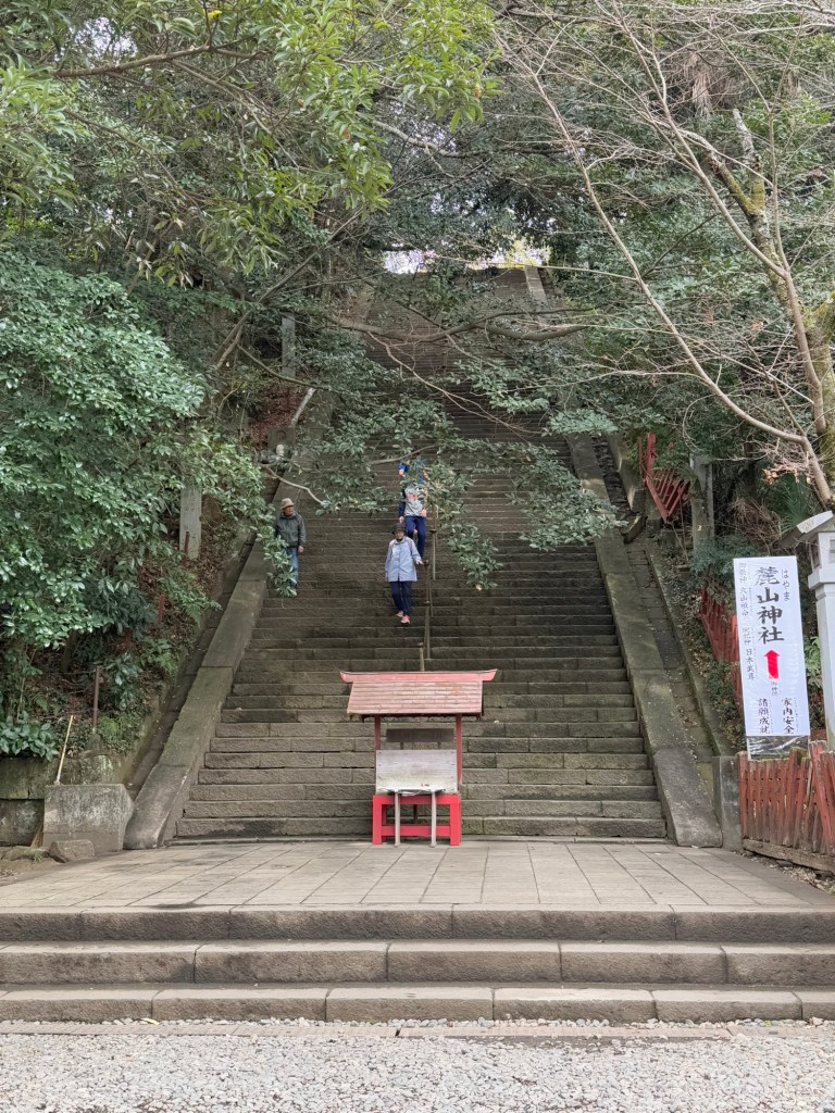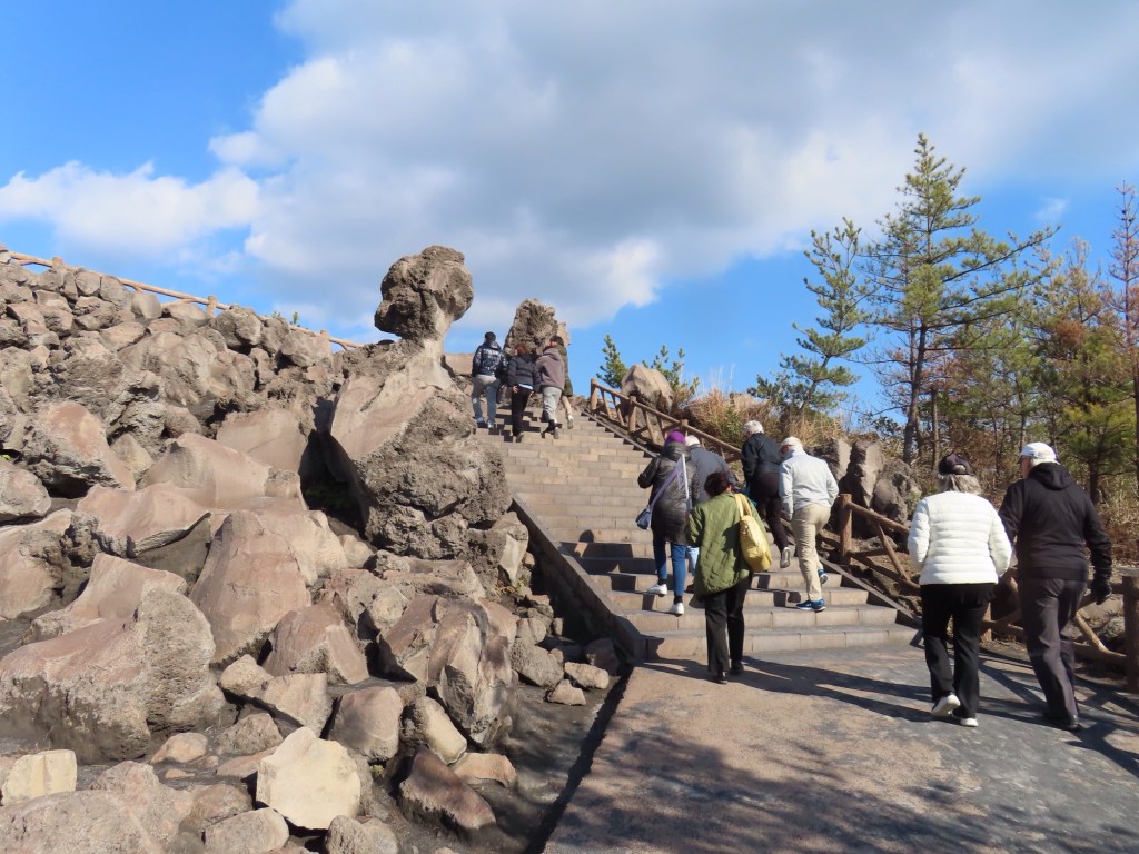 The Lava field here at Sakurajima is 40 metres deep. The hike to the observation spot is 200 stairs up & down. Naomi thinks that there is plenty of magma built up in the last 100+ years so expects it will blow sometime soon.