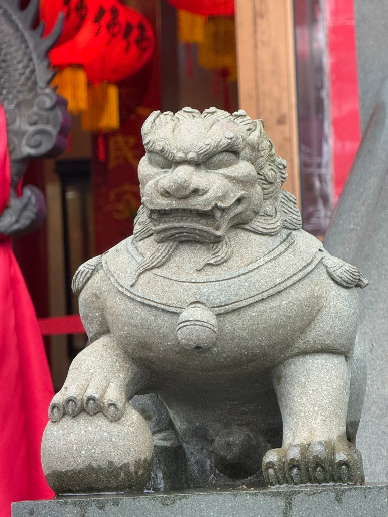 He was posing for us. A huge gong that people were ringing You can see this statue from the harbour it so huge