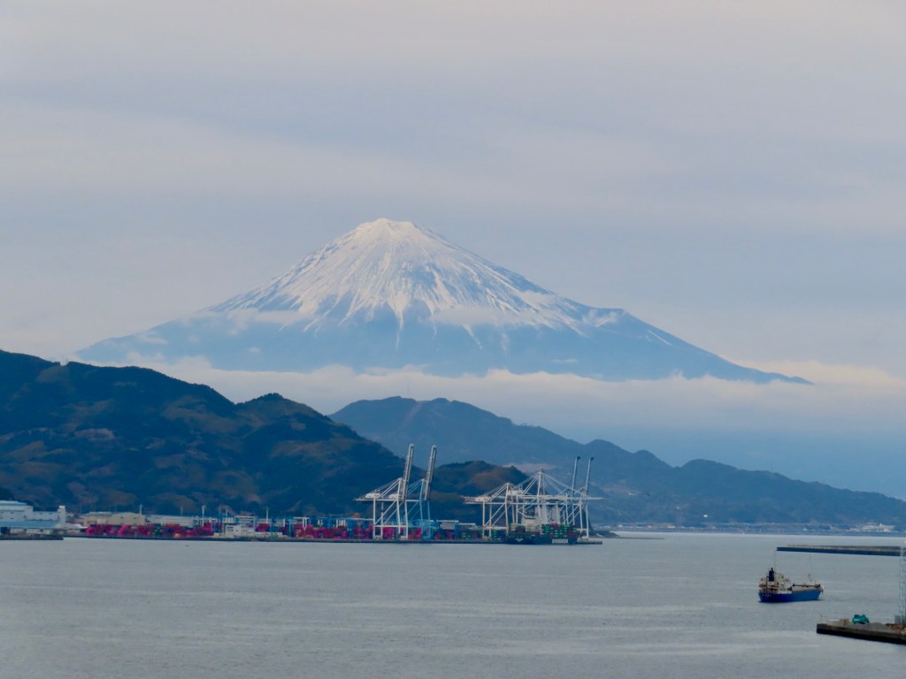 Since we were unable to book an excursion to see Mount Fuji from Tokyo, we are hopefully going to see it from this Shimizu…. hoping for sunshine☀️. As it turned out, it was beautiful pretty much all day.