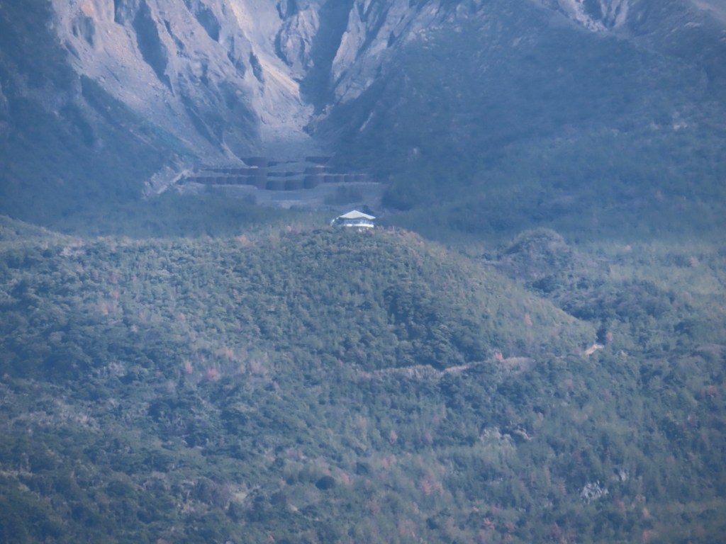There are many what look like dry river beds, that have been created for mud slides caused when ash gets wet… which is often. There are concrete shelters placed every km. Kids wear helmets to school (adults too), in case of eruption.